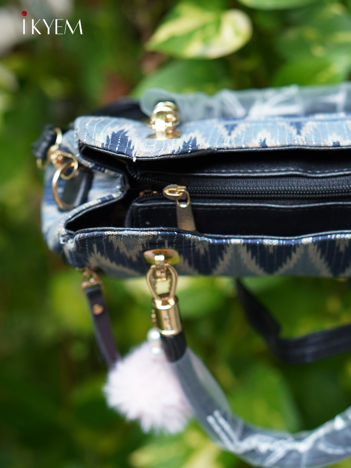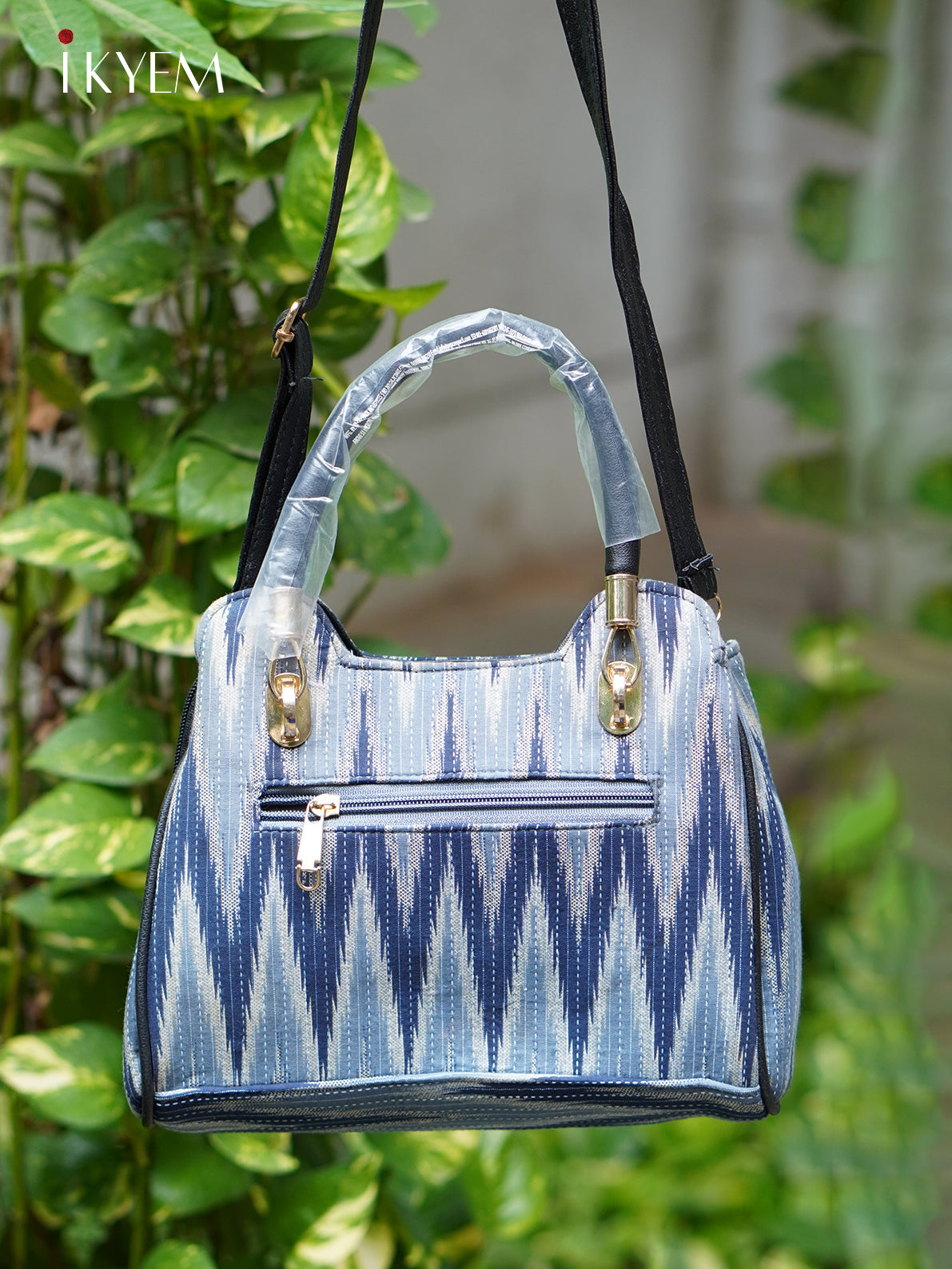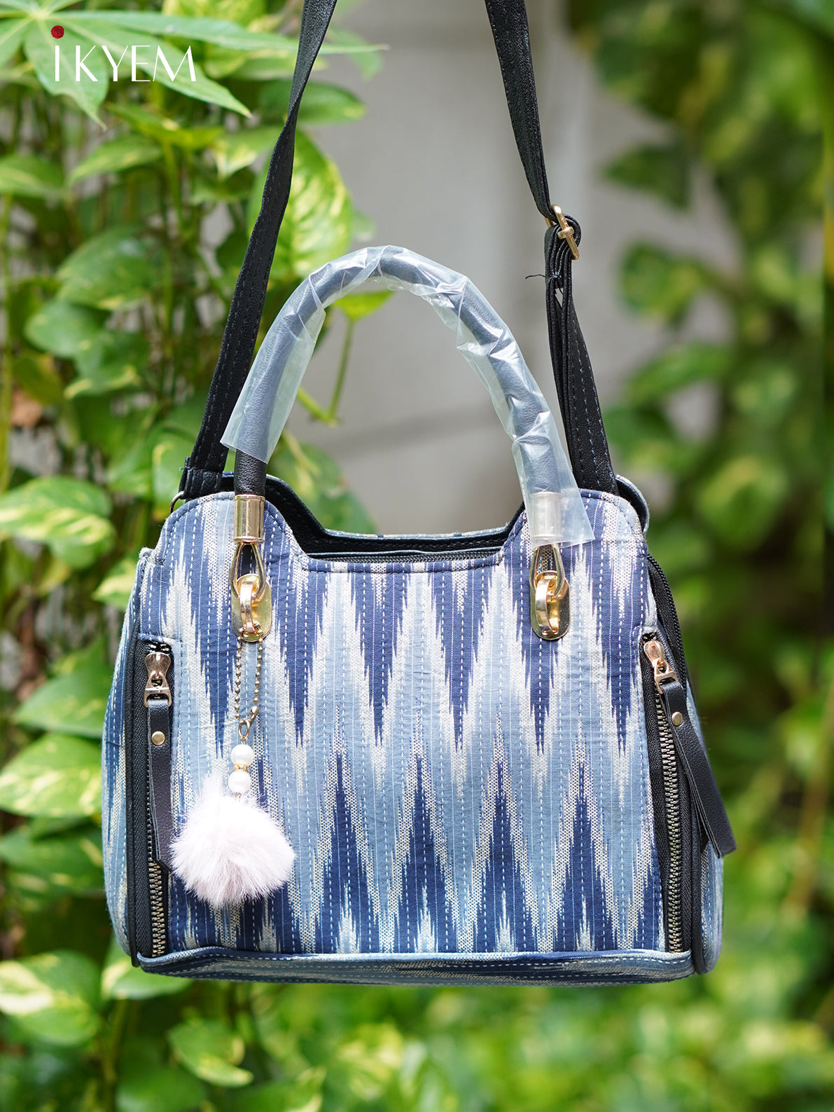 Elegant Blue Ajrakh Handbags, designed for the modern woman on the go. These vibrant bags, adorned with eye-catching floral patterns, effortlessly transition from a chic handbag to a convenient sling bag, adapting to your needs and occasions.