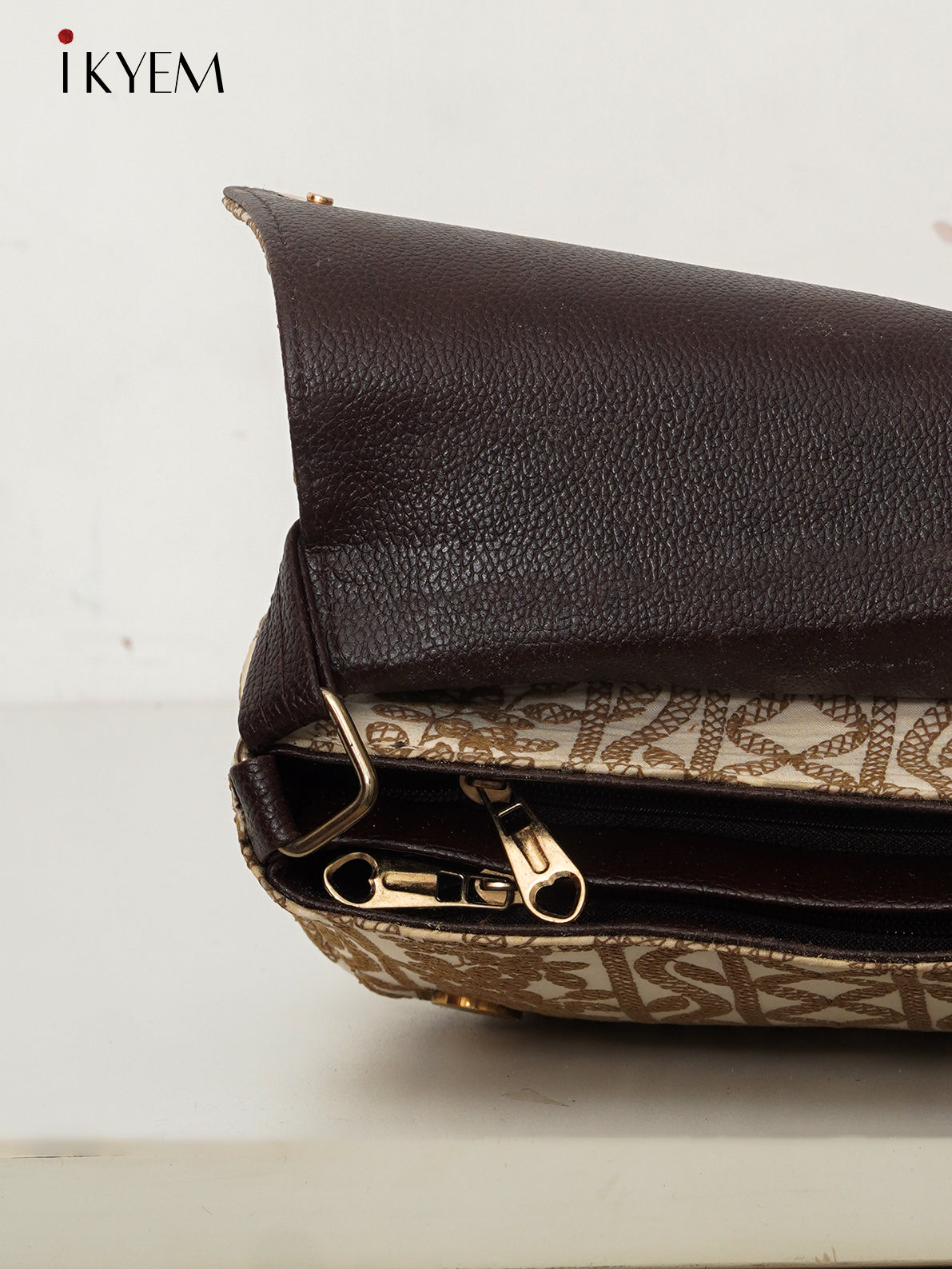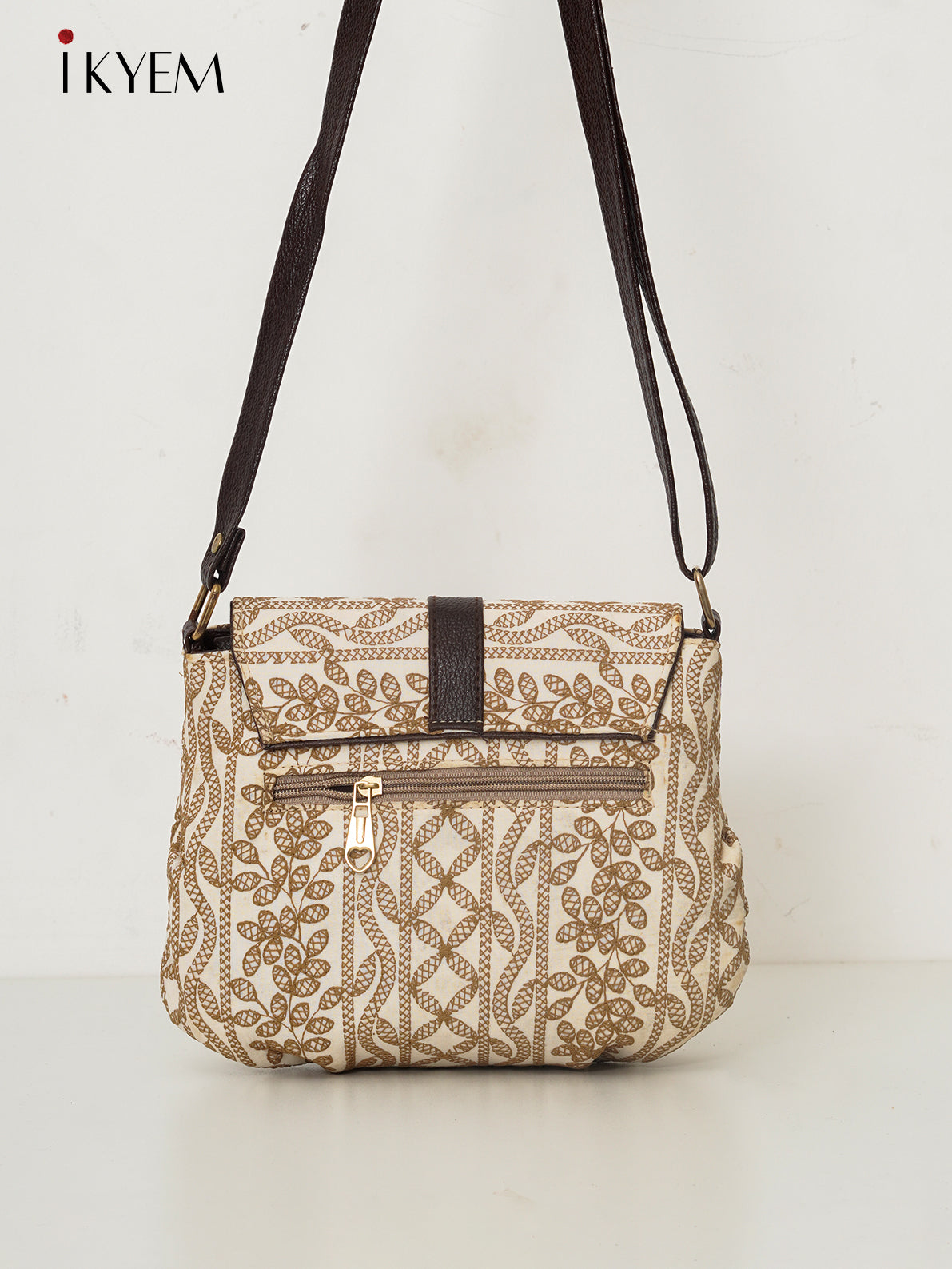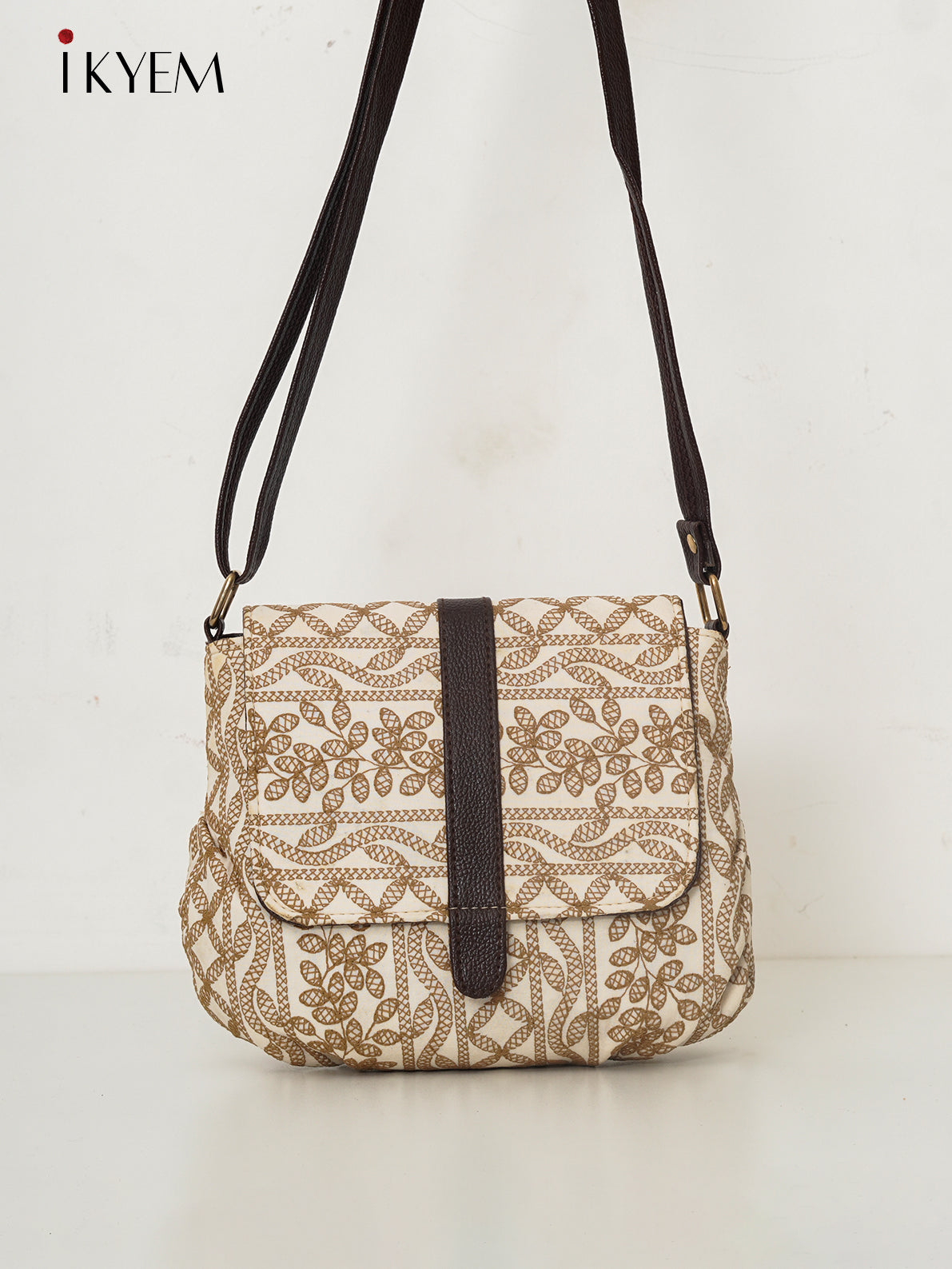 Elegant Cream Ajrakh Handbags, designed for the modern woman on the go. These vibrant bags, adorned with eye-catching floral patterns, effortlessly transition from a chic handbag to a convenient sling bag, adapting to your needs and occasions.