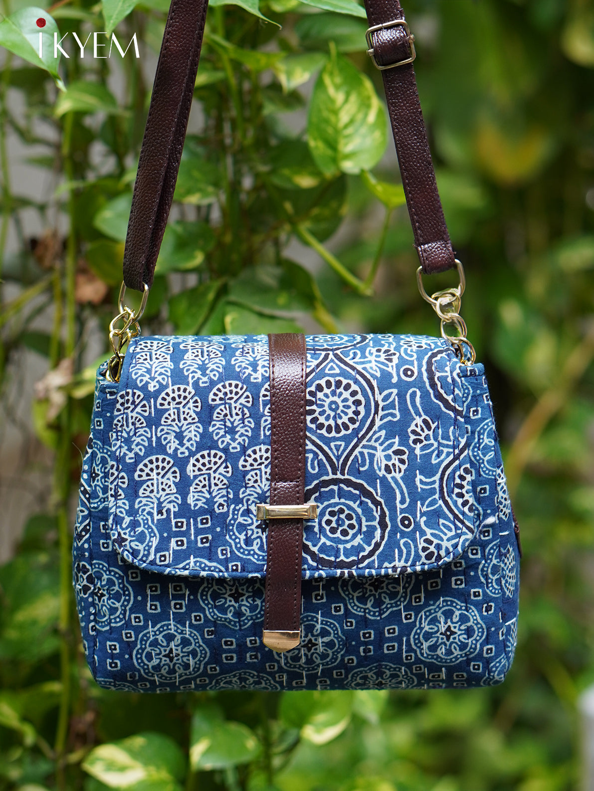 Pretty Blue & Brown Ajrakh Handbags, designed for the modern woman on the go. These vibrant bags, adorned with eye-catching floral patterns, effortlessly transition from a chic handbag to a convenient sling bag, adapting to your needs and occasions.