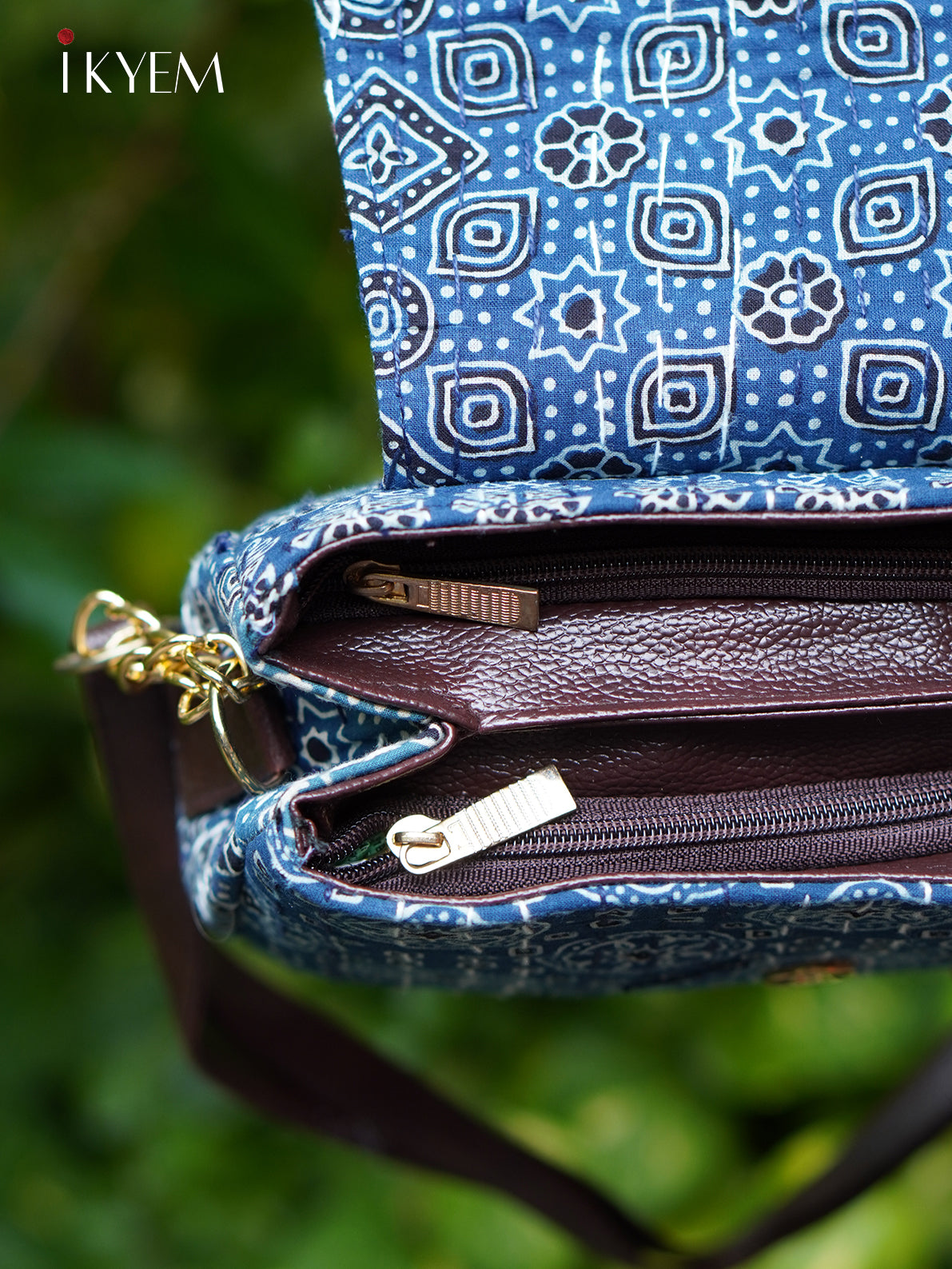 Blue & brown- Ajrakh hand bag