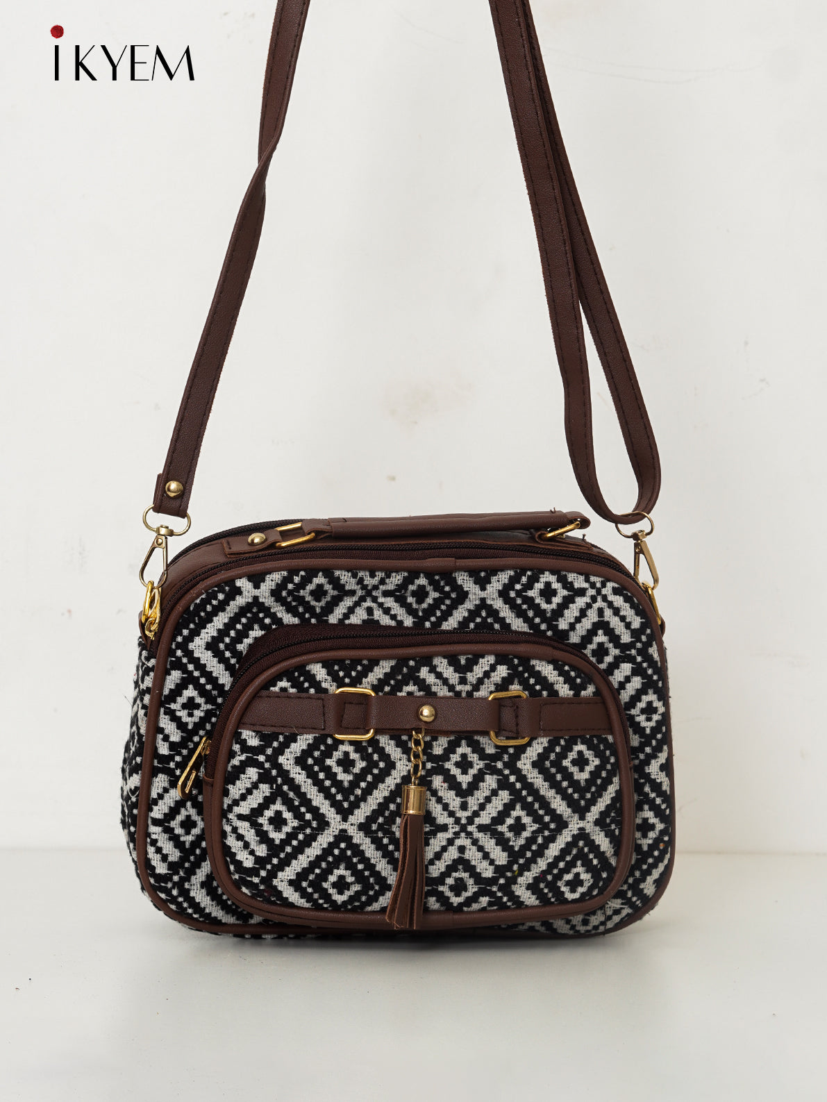 Elegant Black  Ajrakh Handbags, designed for the modern woman on the go. These vibrant bags, adorned with eye-catching floral patterns, effortlessly transition from a chic handbag to a convenient sling bag, adapting to your needs and occasions.