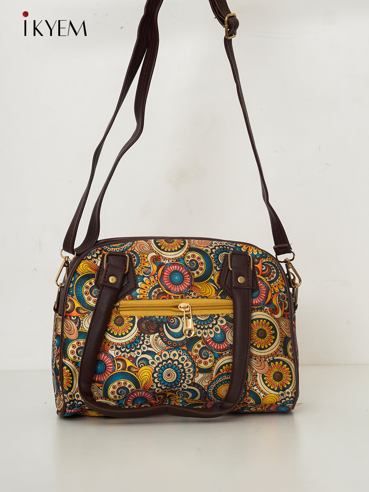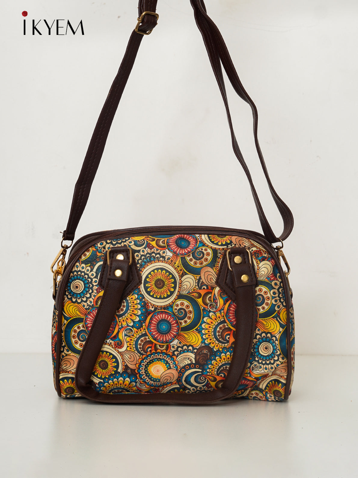 Elegant Blue & Brown Ajrakh Handbags, designed for the modern woman on the go. These vibrant bags, adorned with eye-catching floral patterns, effortlessly transition from a chic handbag to a convenient sling bag, adapting to your needs and occasions.