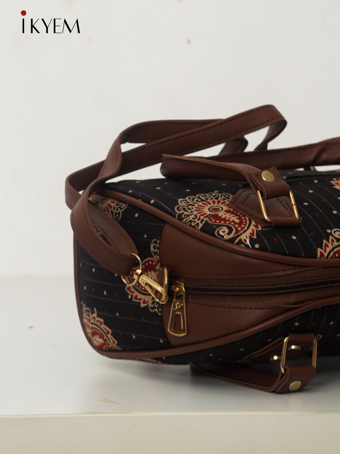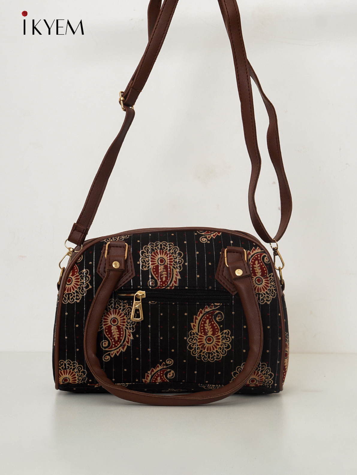 Elegant Black Ajrakh Handbags, designed for the modern woman on the go. These vibrant bags, adorned with eye-catching floral patterns, effortlessly transition from a chic handbag to a convenient sling bag, adapting to your needs and occasions.