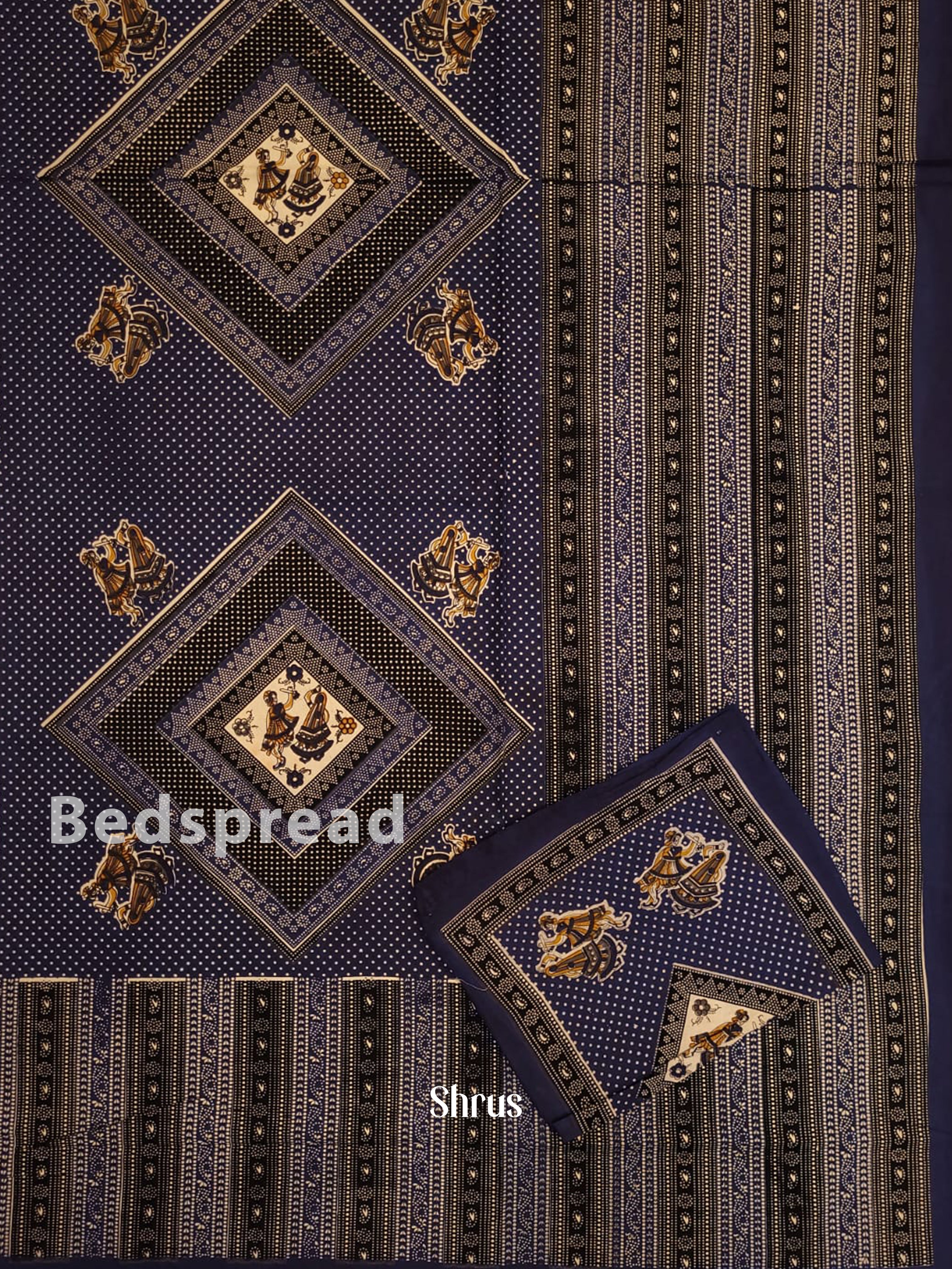 Experience the pinnacle of comfort and elegance with our Blue & Black Jaipuri Printed Bedspread, complete with two matching pillow covers. Adorned with stunning floral designs and vibrant hues, this bedspread is crafted from high-quality cotton for the ultimate combination of style and coziness. Create the perfect atmosphere for a peaceful night's rest.