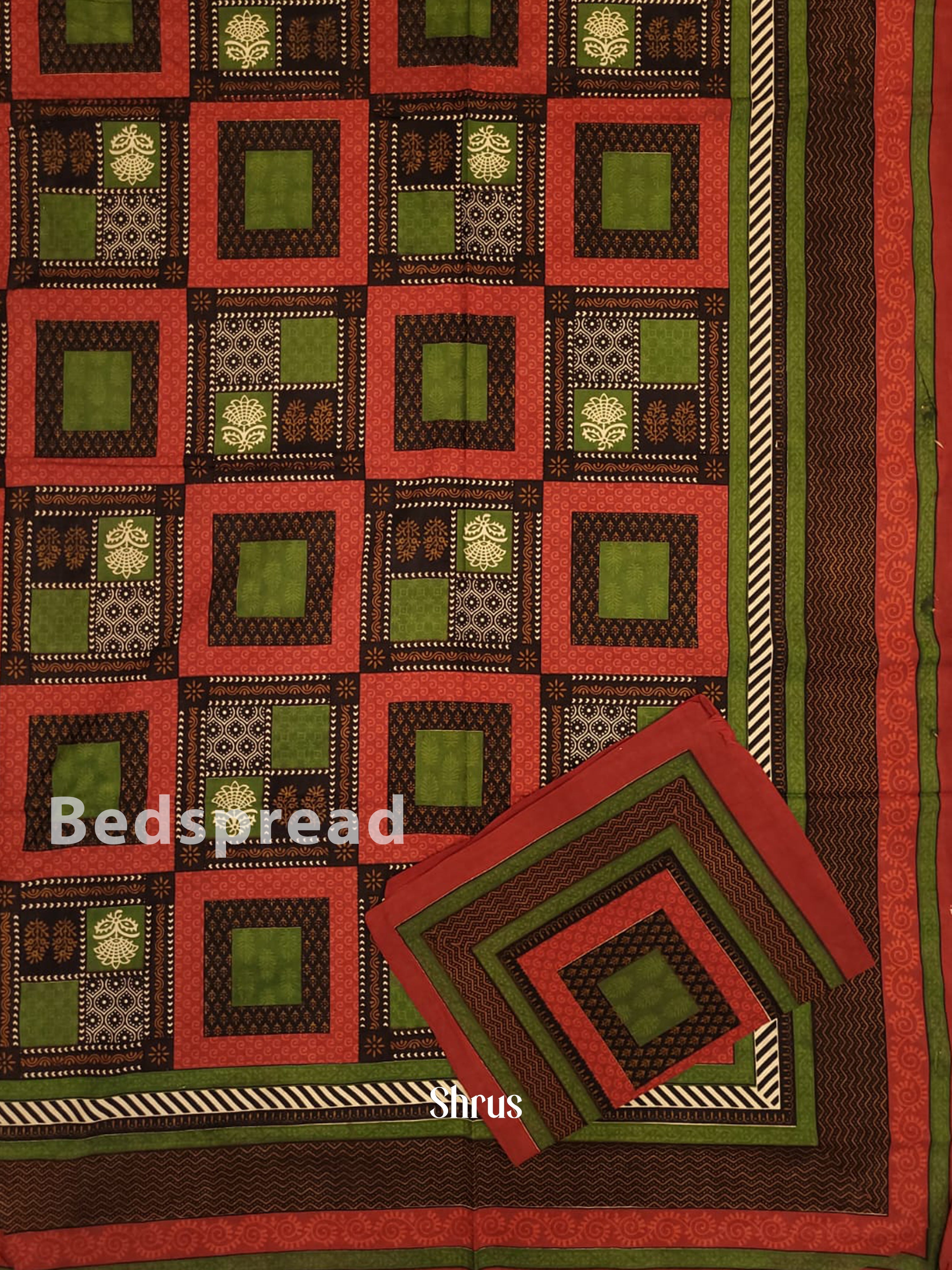 Experience the pinnacle of comfort and elegance with our Green & Red Jaipuri Printed Bedspread, complete with two matching pillow covers. Adorned with stunning floral designs and vibrant hues, this bedspread is crafted from high-quality cotton for the ultimate combination of style and coziness. Create the perfect atmosphere for a peaceful night's rest.