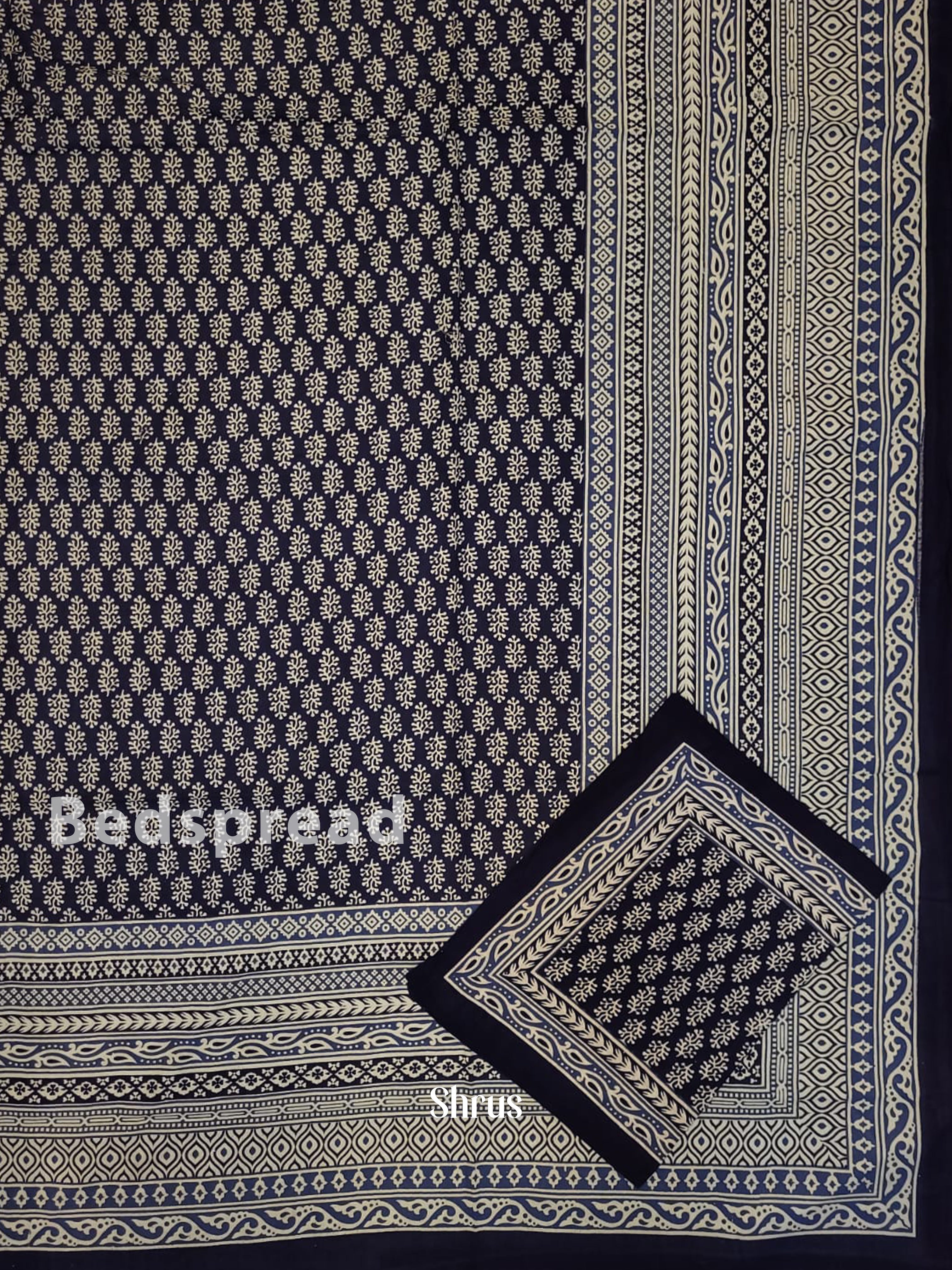 Experience the pinnacle of comfort and elegance with our Indigo & Cream Jaipuri Printed Bedspread, complete with two matching pillow covers. Adorned with stunning floral designs and vibrant hues, this bedspread is crafted from high-quality cotton for the ultimate combination of style and coziness. Create the perfect atmosphere for a peaceful night's rest.