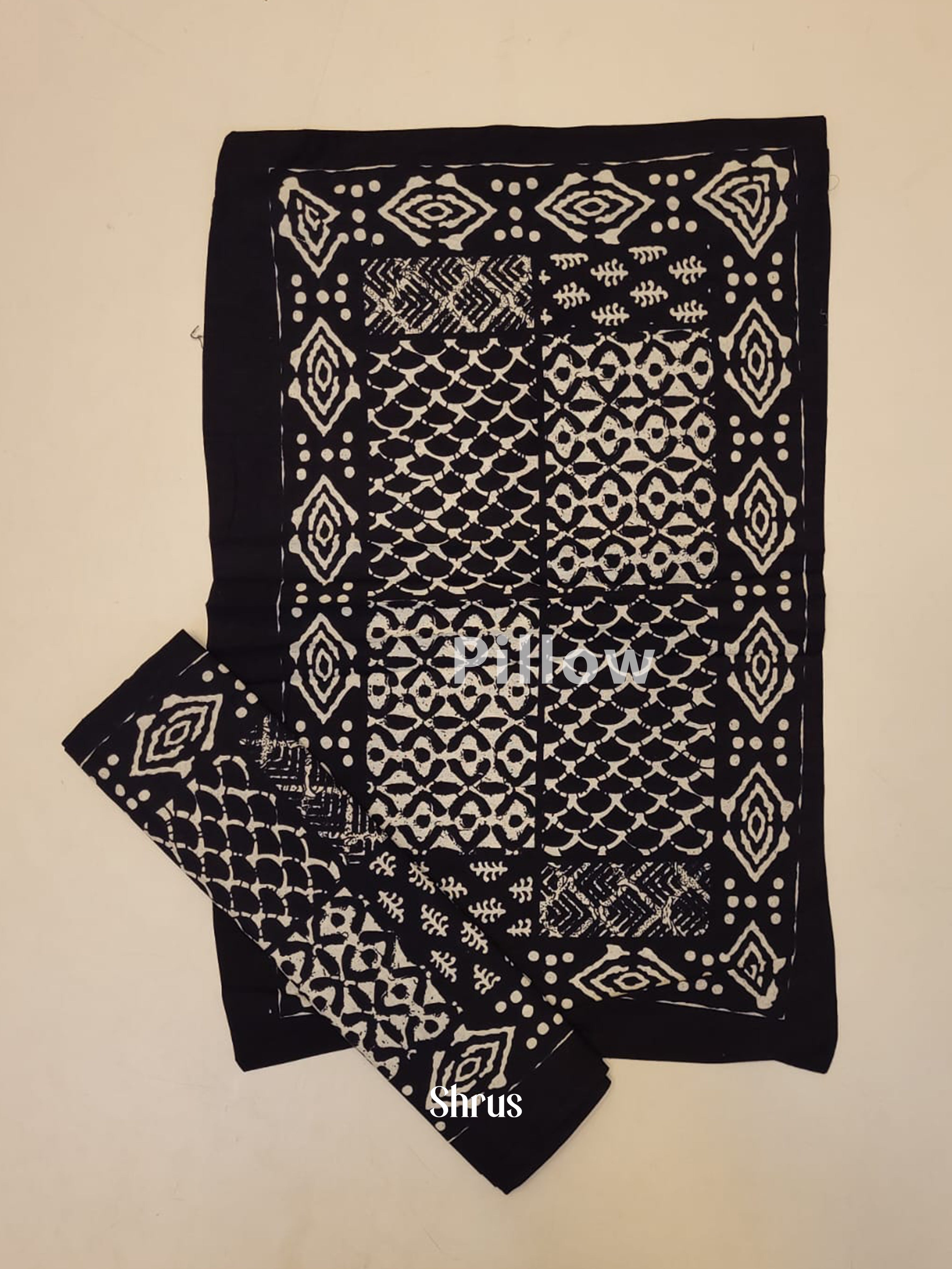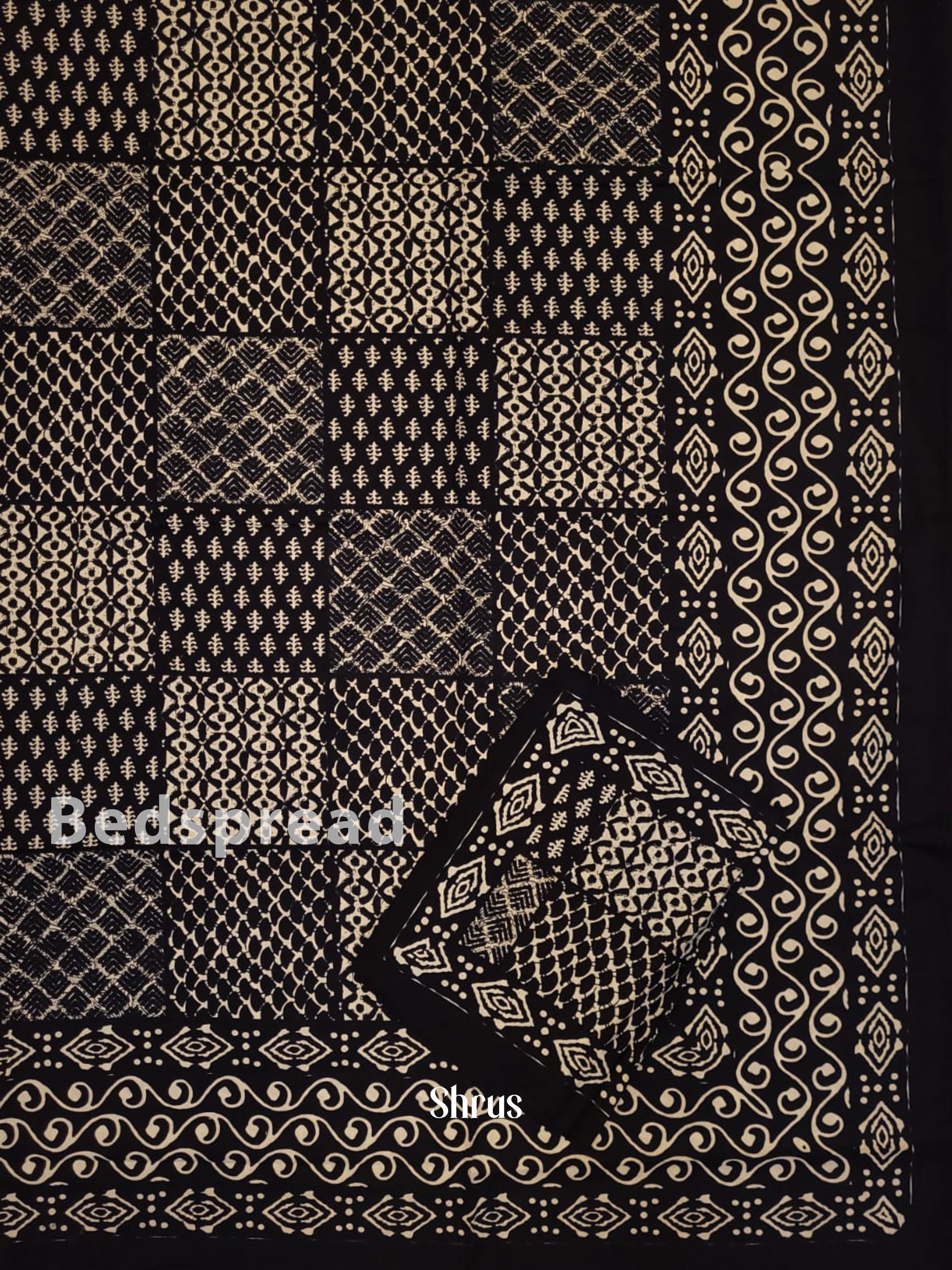 Experience unparalleled comfort and sophistication with our Black & Cream Jaipuri Printed Bedspread. This set includes two matching pillow covers and is made from premium cotton, ensuring both style and coziness. Featuring intricate floral patterns and vivid colors, it is the perfect addition for a tranquil and restful sleep.