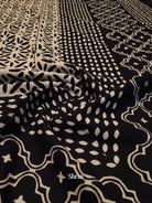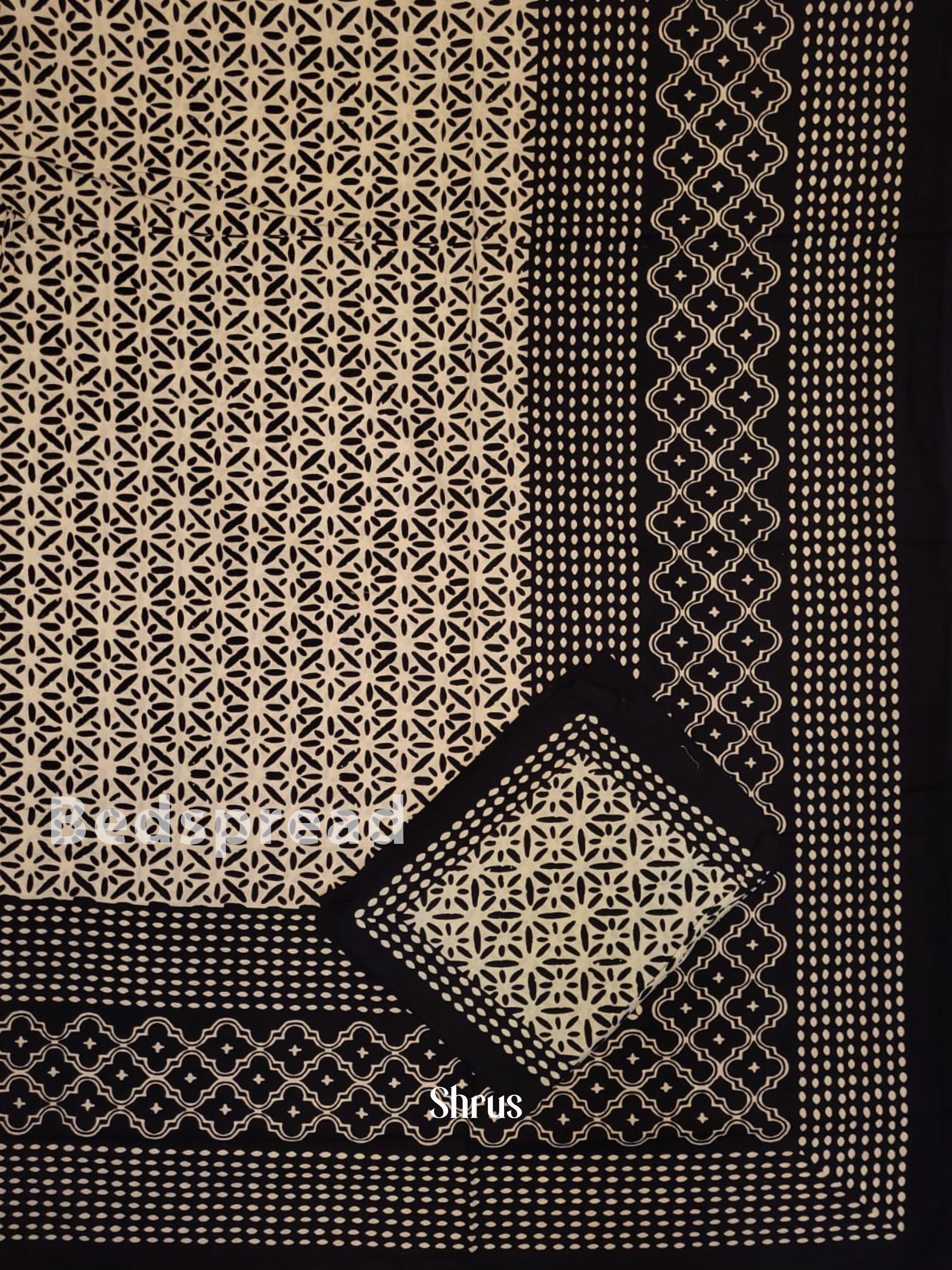 Experience unparalleled comfort and sophistication with our Black & Cream Jaipuri Printed Bedspread. This set includes two matching pillow covers and is made from premium cotton, ensuring both style and coziness. Featuring intricate floral patterns and vivid colors, it is the perfect addition for a tranquil and restful sleep.