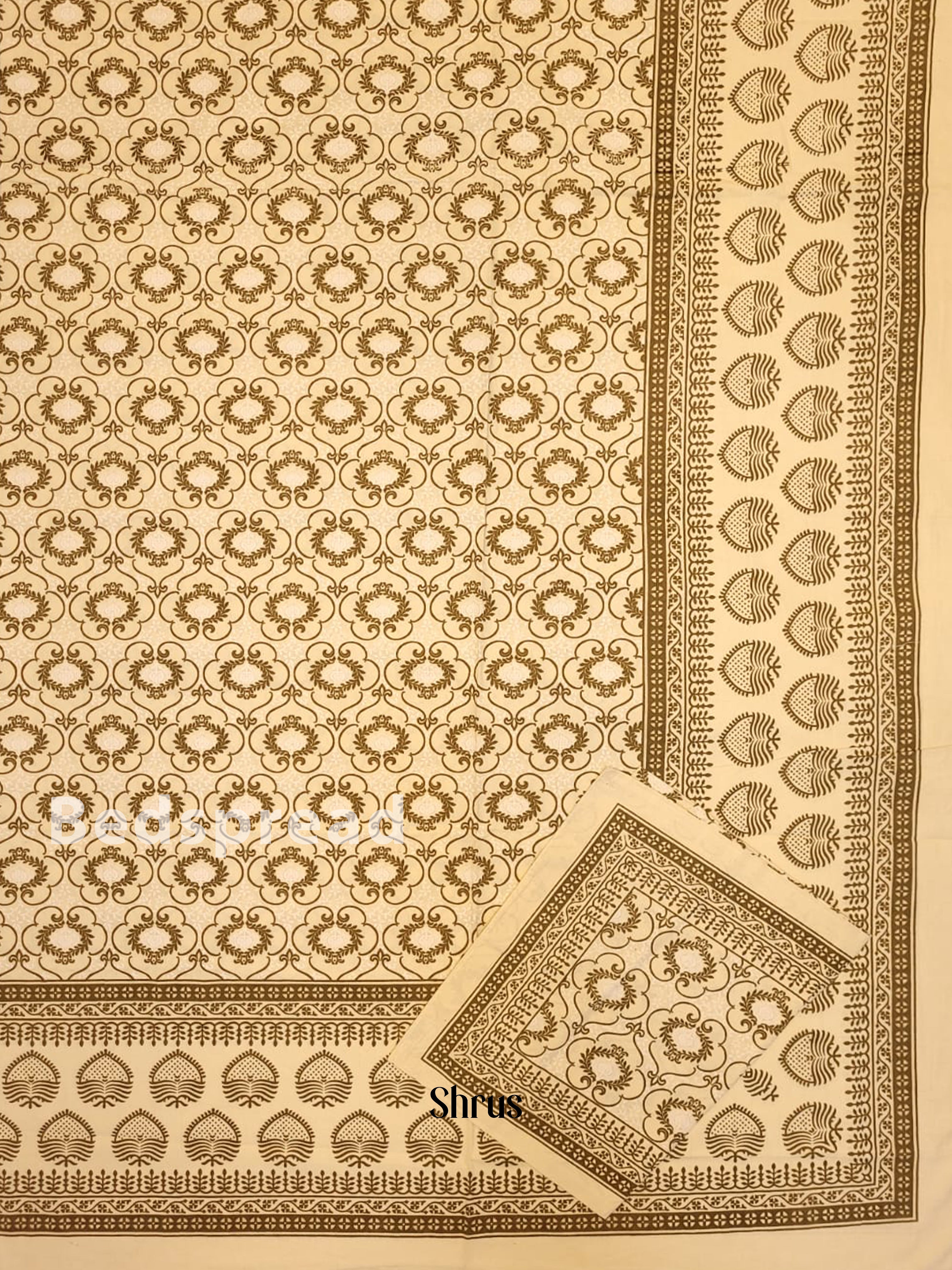 Indulge in luxury with our Beige & Mehandi Green Jaipuri Printed Bedspread, crafted with intricate floral patterns and vibrant colors, adding a touch of elegance to your bedroom. Made from premium quality cotton, it offers both comfort and style, perfect for a cozy night's sleep.