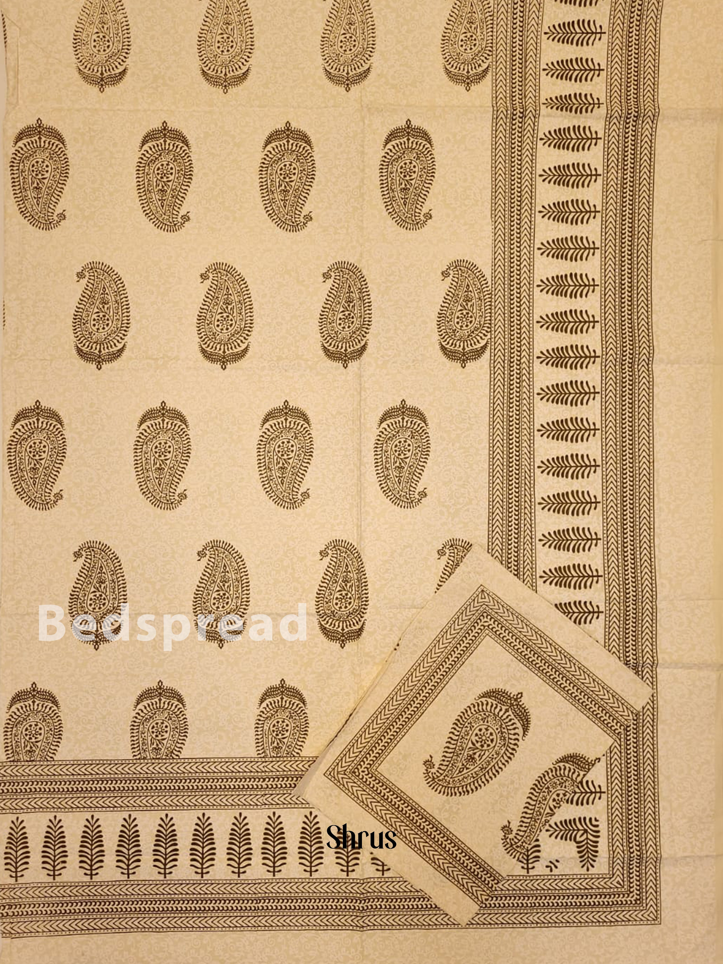 Experience the pinnacle of comfort and elegance with our Beige & Mehandi Green Jaipuri Printed Bedspread, complete with two matching pillow covers. Adorned with stunning floral designs and vibrant hues, this bedspread is crafted from high-quality cotton for the ultimate combination of style and coziness. Create the perfect atmosphere for a peaceful night's rest.