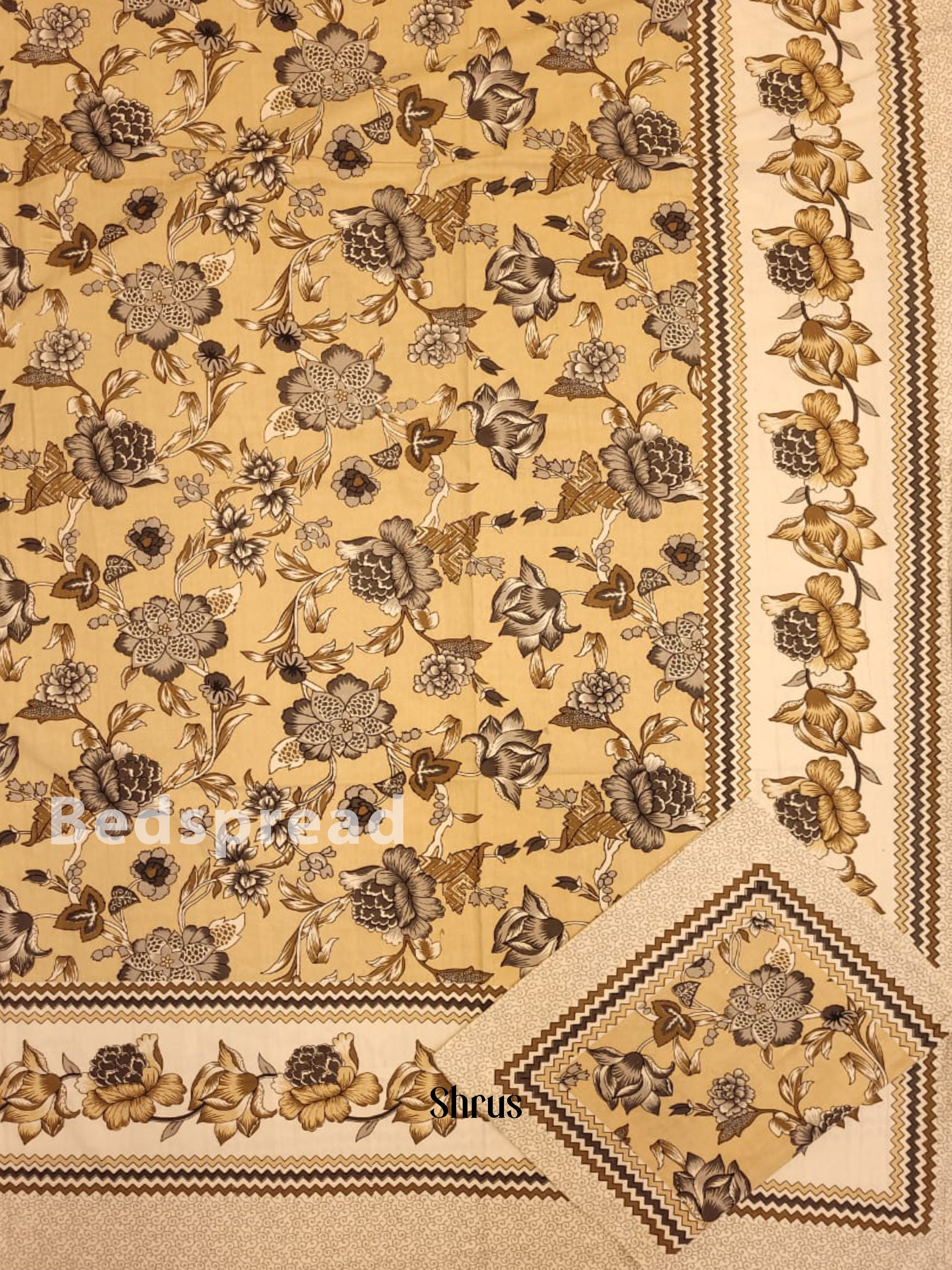 Experience the epitome of comfort and sophistication with our Cream & Beige Printed Bedspread and matching pillow covers. Featuring intricate floral patterns and vibrant colors, this bedspread is expertly crafted from premium cotton, ensuring a perfect blend of style and comfort. Enhance your sleeping experience with the perfect setting for a tranquil night's sleep.