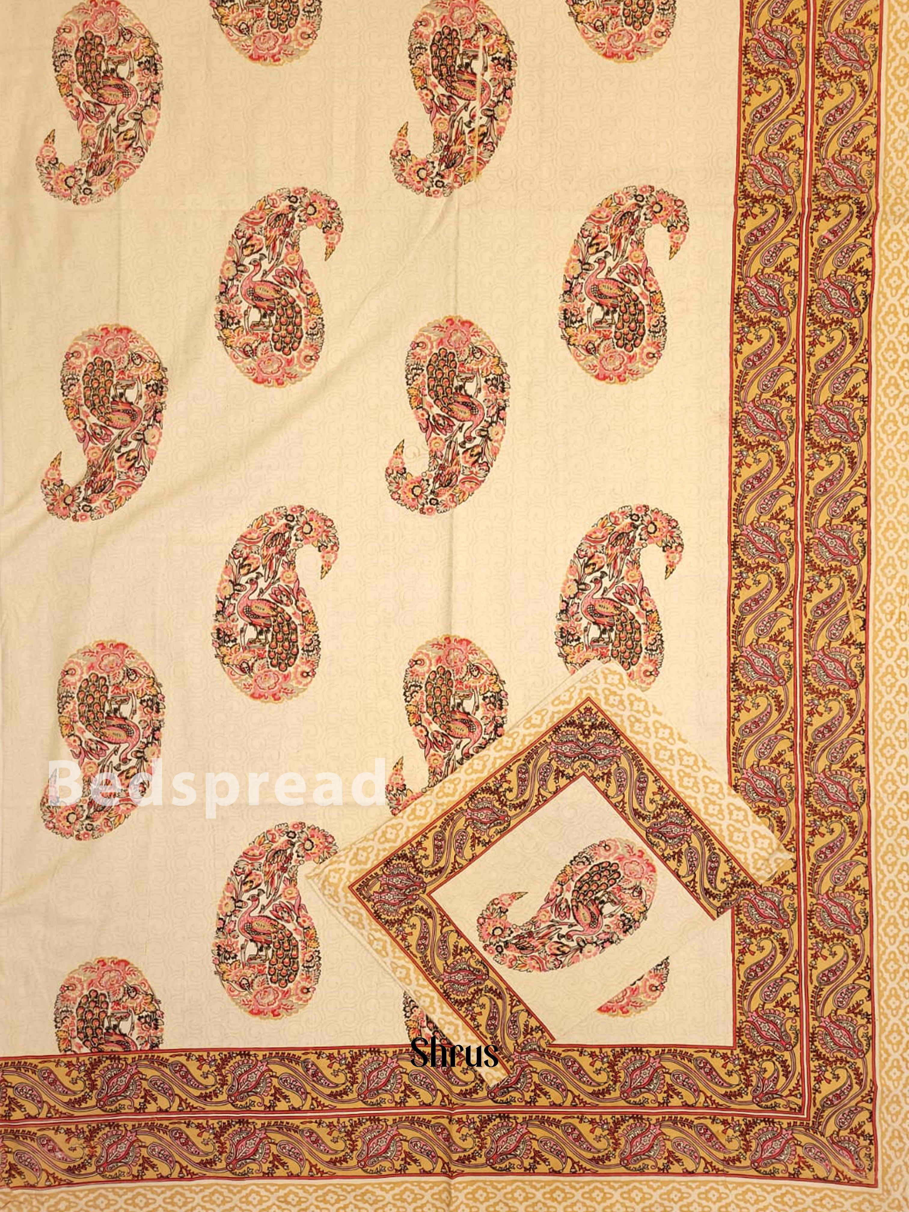 Transform your bedroom into a haven of luxury and sophistication with our Jaipuri Printed Bedspread in Cream & Pink. This set includes a bedspread and two pillow covers, all made from premium cotton material. Featuring exquisite floral patterns and lively shades, it offers both stunning design and unparalleled comfort, providing the ideal environment for a restful sleep.