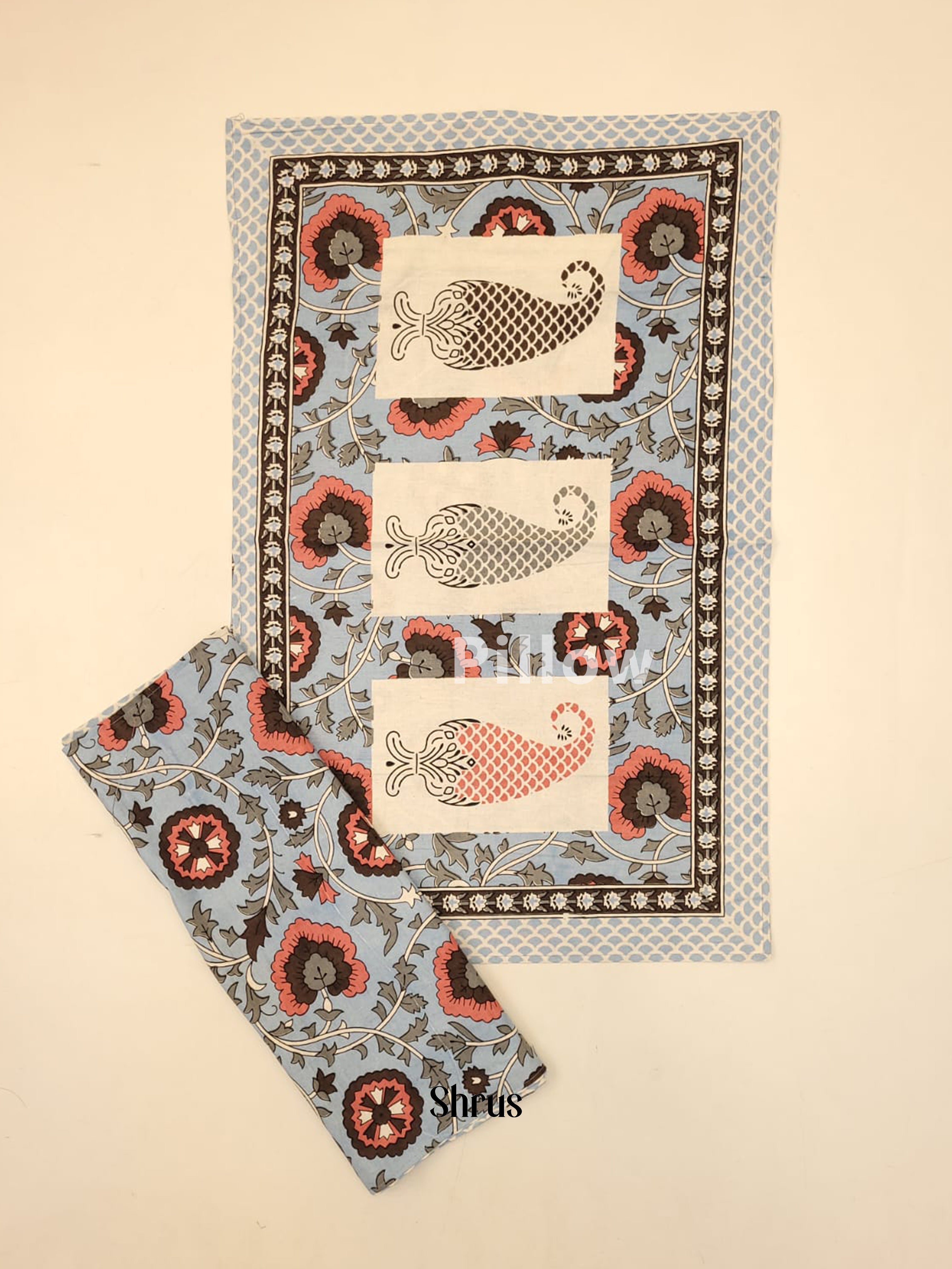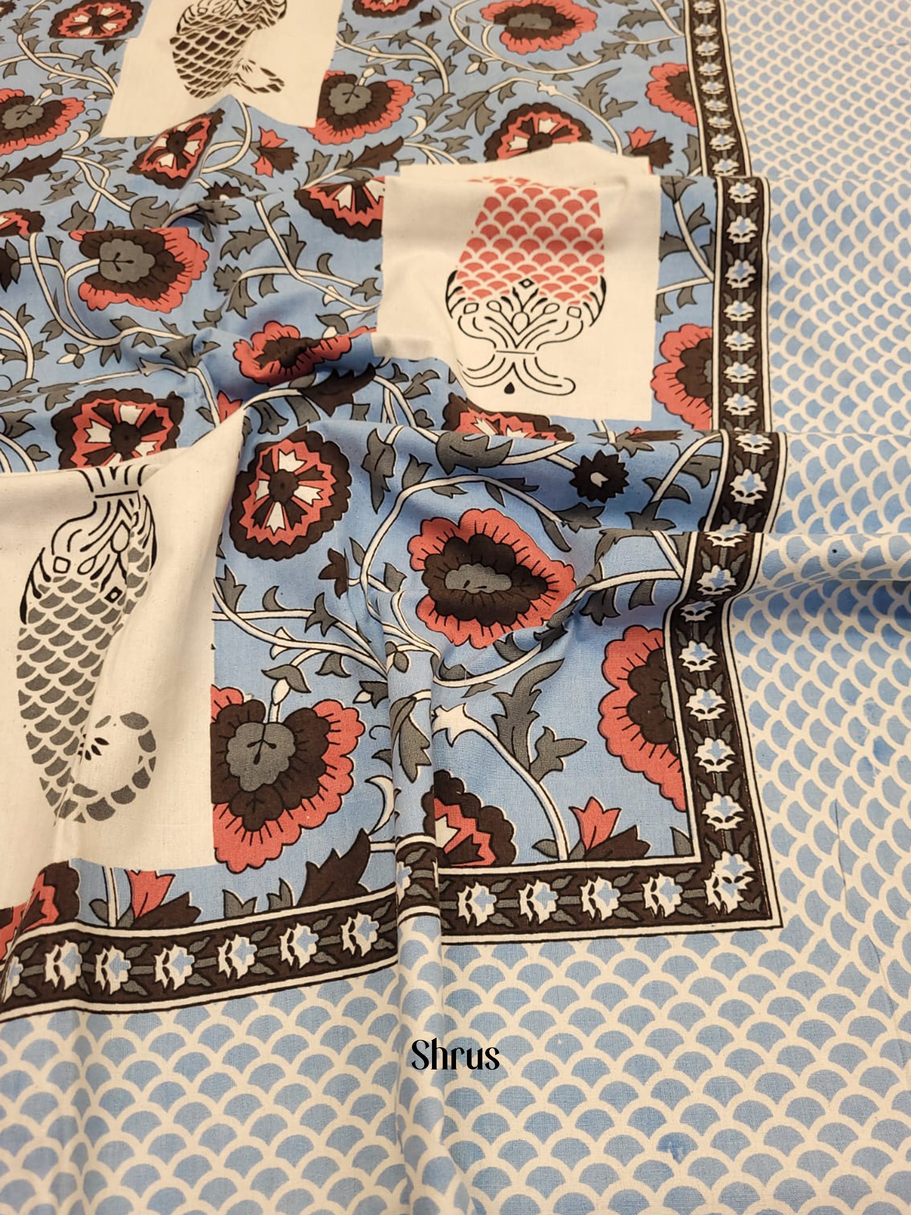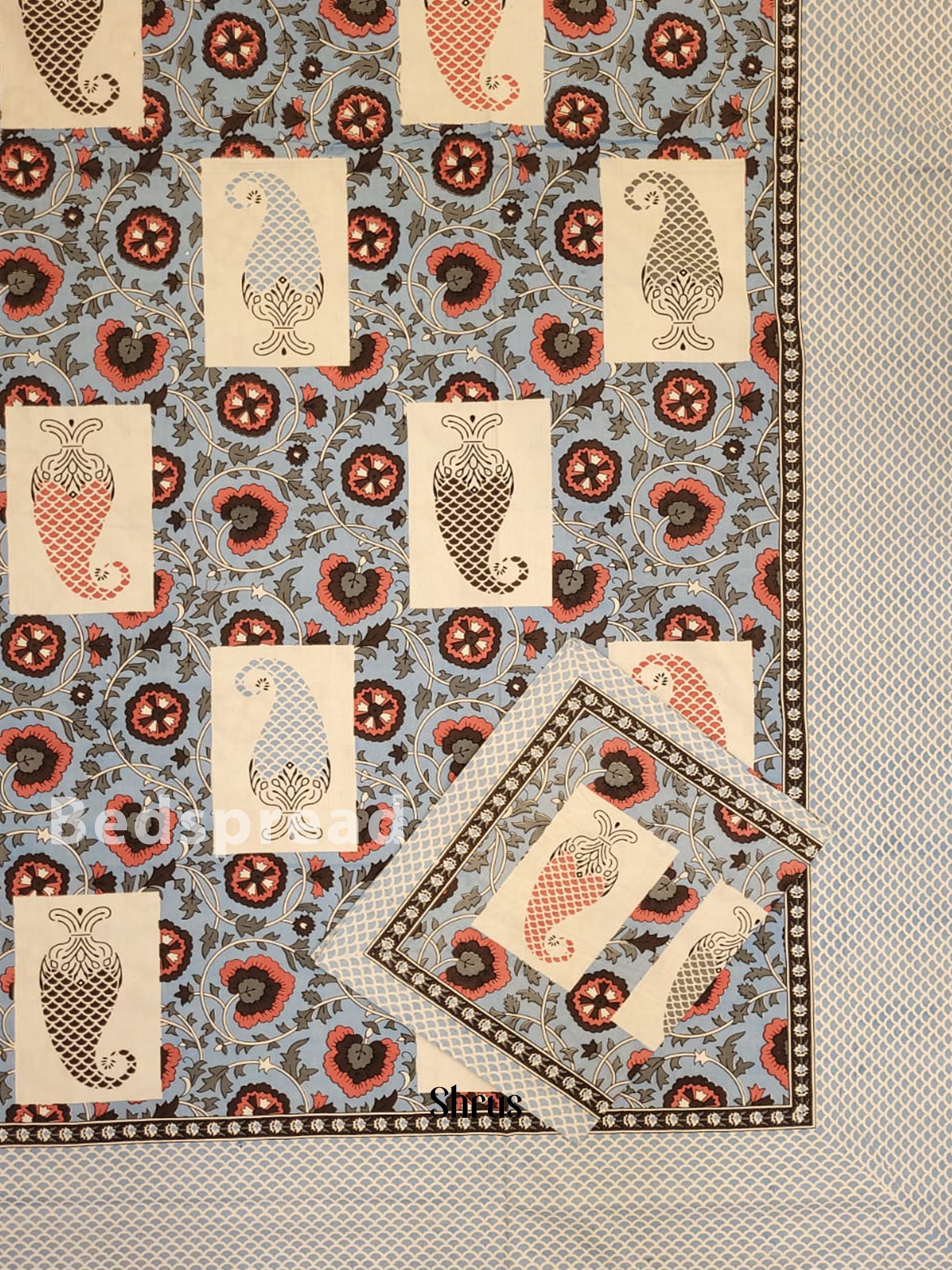 Transform your bedroom into a haven of luxury and sophistication with our Jaipuri Printed Bedspread in Cream & Blue. This set includes a bedspread and two pillow covers, all made from premium cotton material. Featuring exquisite floral patterns and lively shades, it offers both stunning design and unparalleled comfort, providing the ideal environment for a restful sleep.