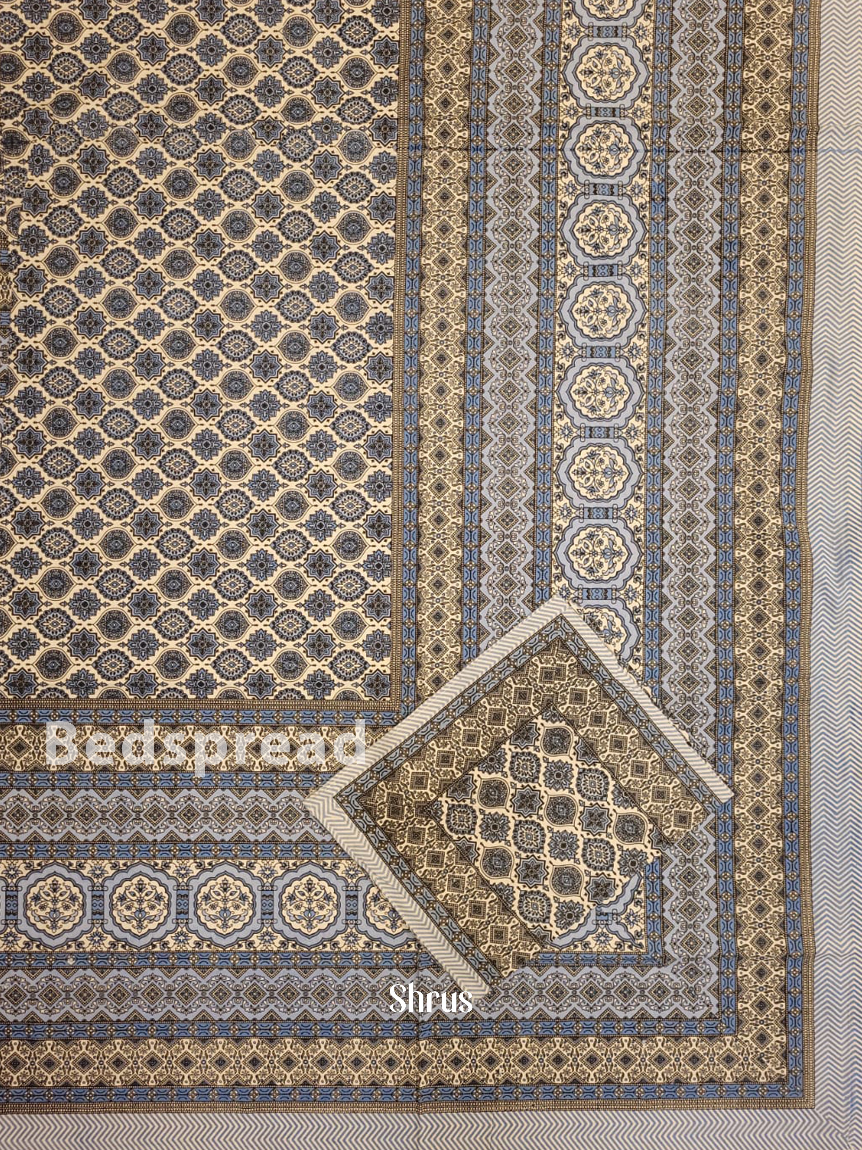 Cream & Blue - Bed Spreads