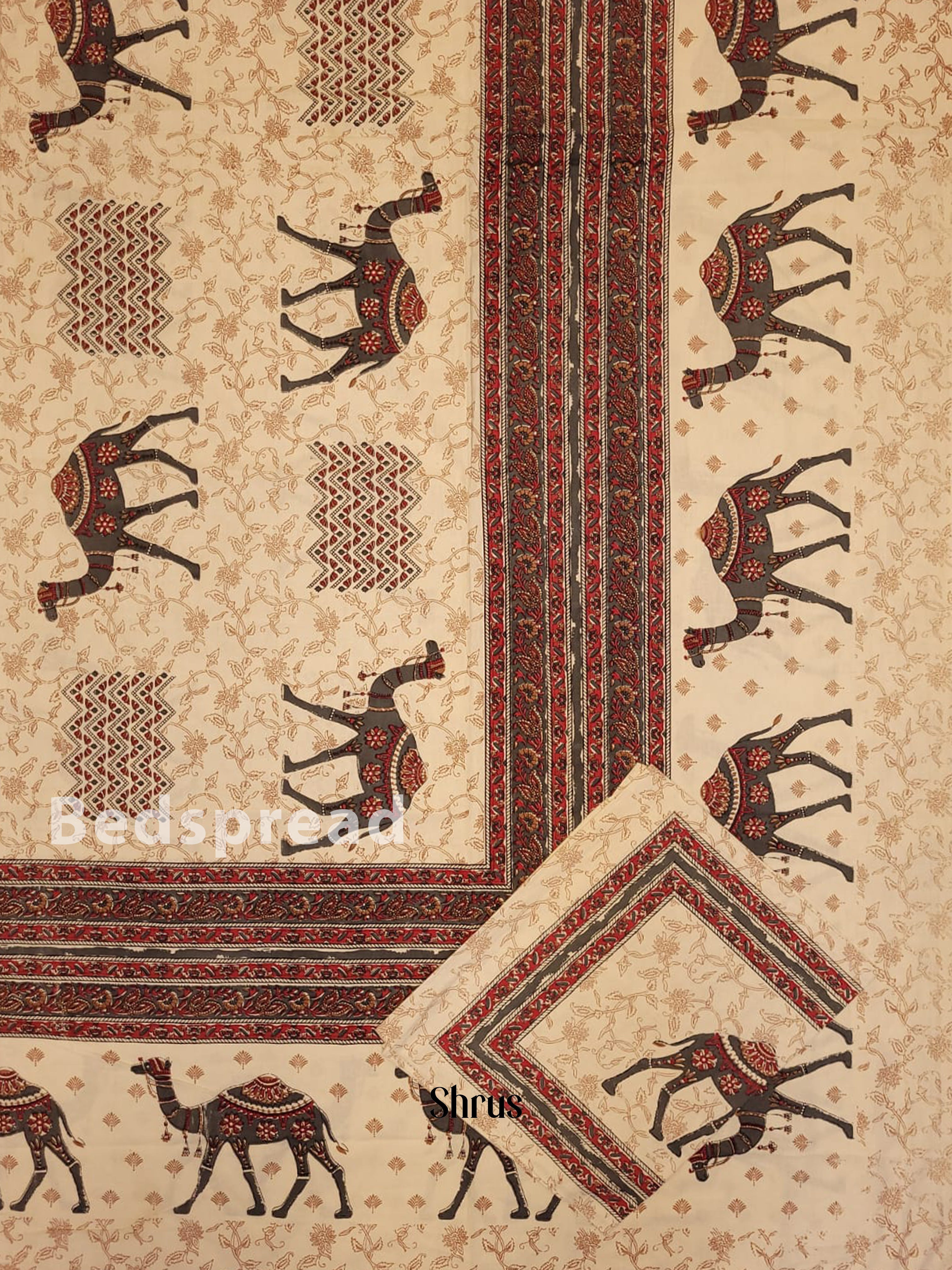 Experience unparalleled comfort and sophistication with our Cream & Grey Jaipuri Printed Bedspread. This set includes two matching pillow covers and is made from premium cotton, ensuring both style and coziness. Featuring intricate floral patterns and vivid colors, it is the perfect addition for a tranquil and restful sleep.