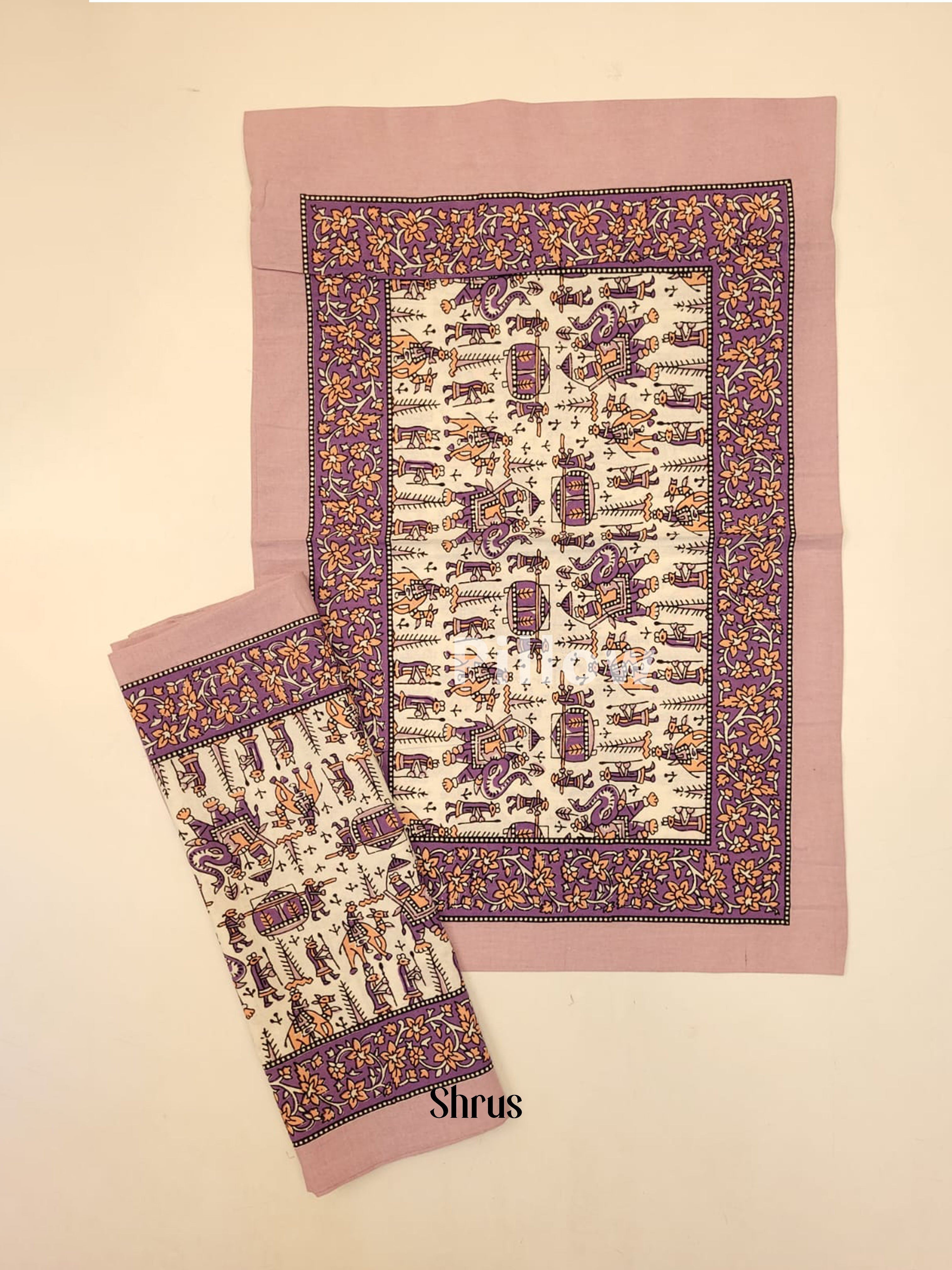 Transform your bedroom into a haven of luxury and sophistication with our Jaipuri Printed Bedspread in Cream &Lavender. This set includes a bedspread and two pillow covers, all made from premium cotton material. Featuring exquisite floral patterns and lively shades, it offers both stunning design and unparalleled comfort, providing the ideal environment for a restful sleep.