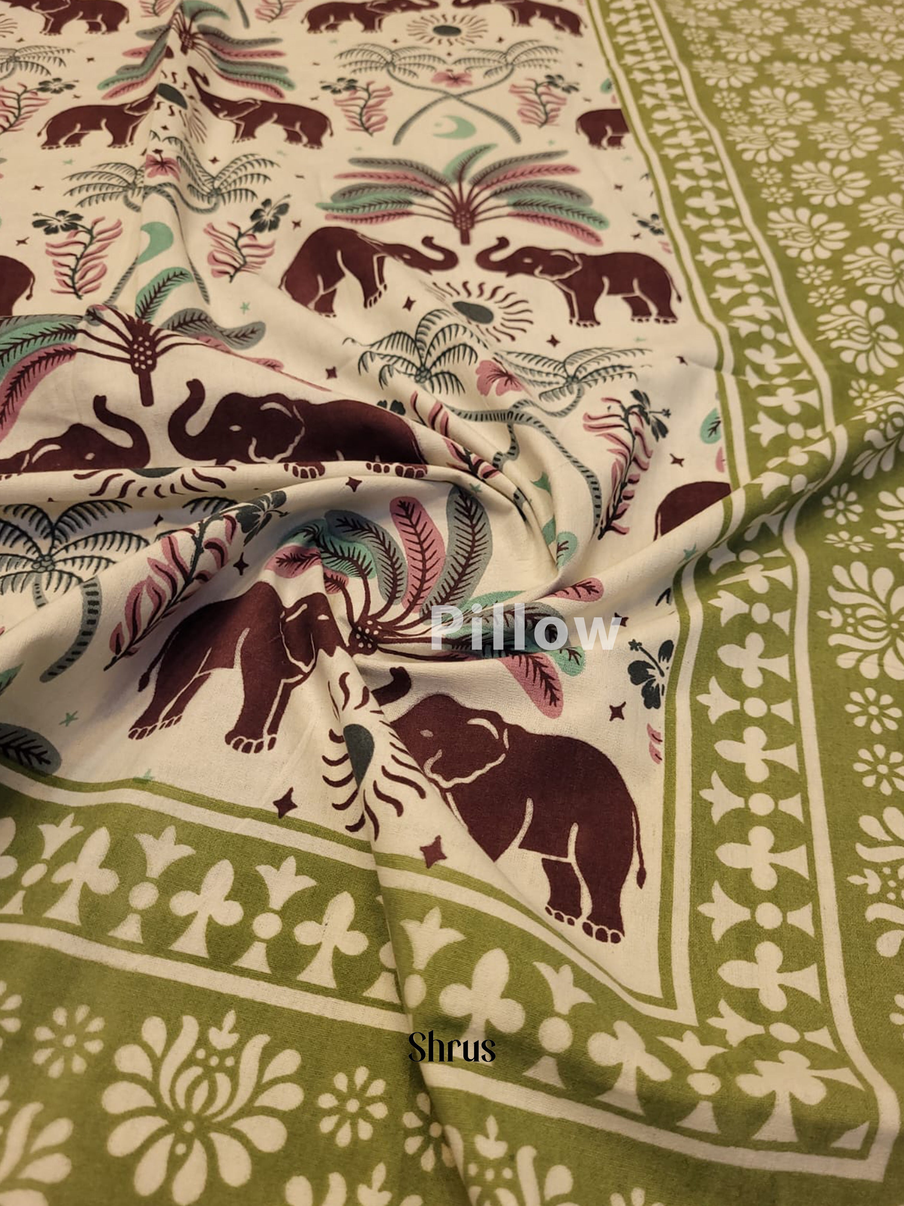 Experience unparalleled comfort and sophistication with our Green & Cream Jaipuri Printed Bedspread. This set includes two matching pillow covers and is made from premium cotton, ensuring both style and coziness. Featuring intricate floral patterns and vivid colors, it is the perfect addition for a tranquil and restful sleep.