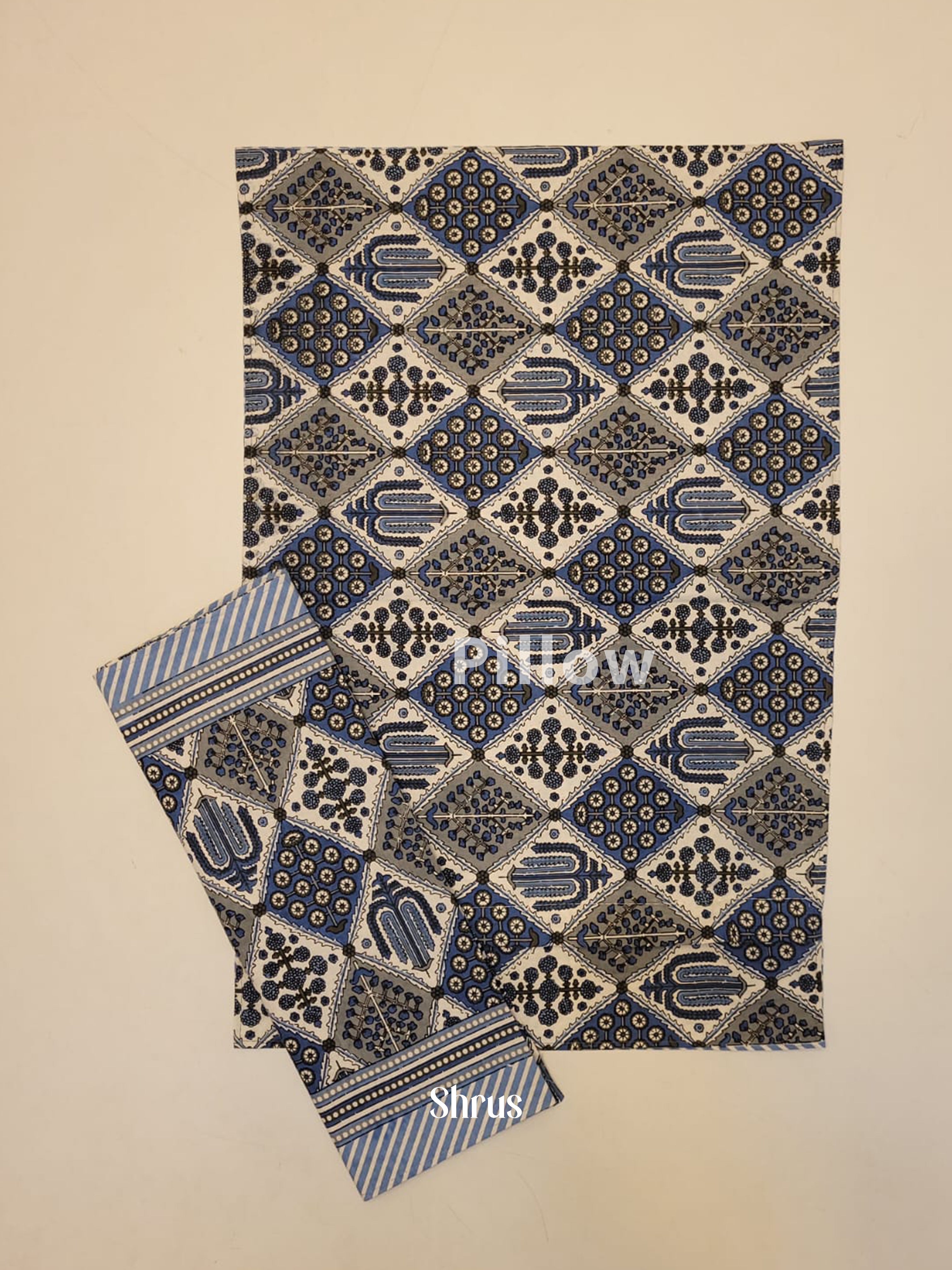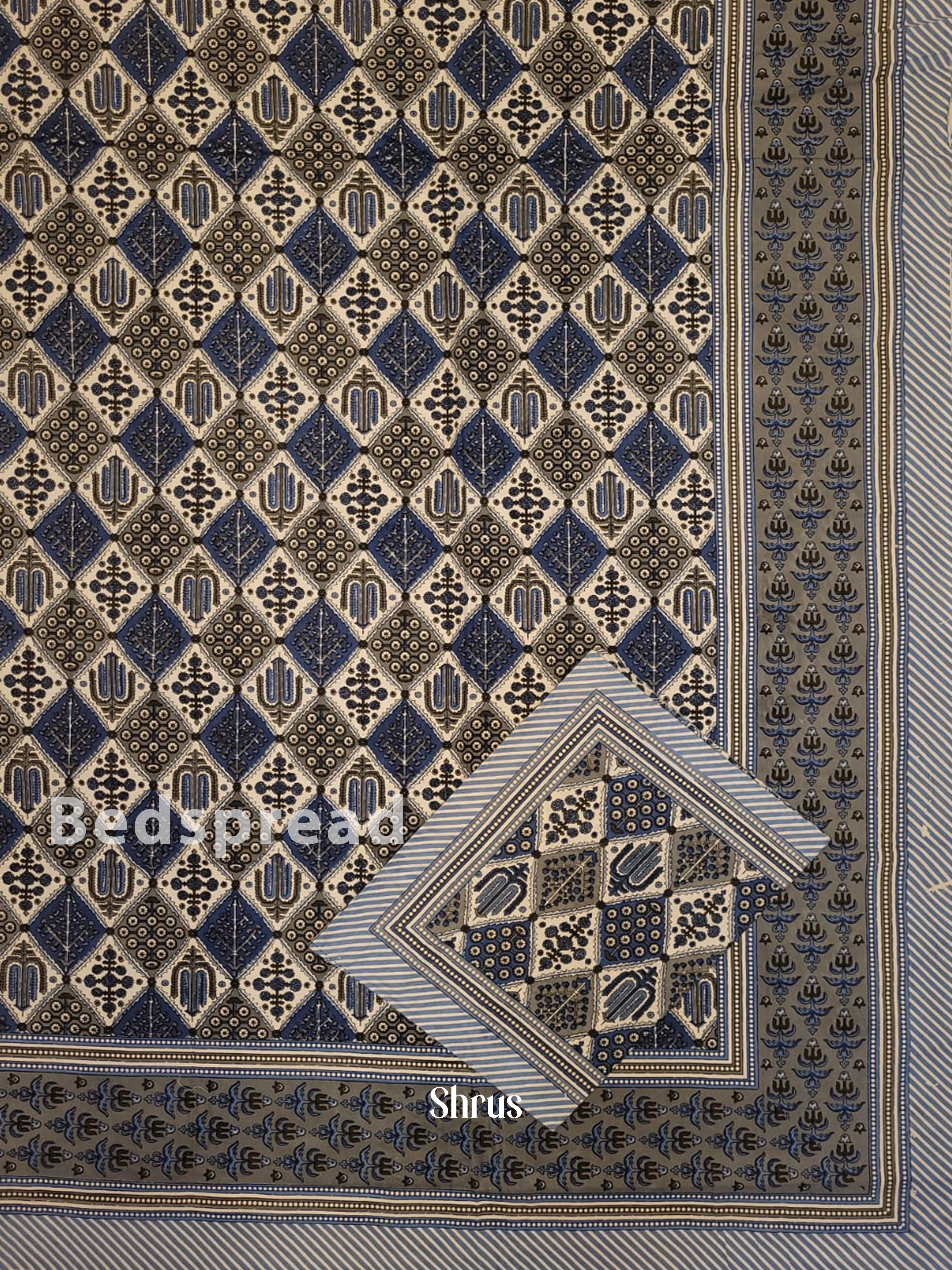 Experience unparalleled comfort and sophistication with our Blue & Cream Jaipuri Printed Bedspread. This set includes two matching pillow covers and is made from premium cotton, ensuring both style and coziness. Featuring intricate floral patterns and vivid colors, it is the perfect addition for a tranquil and restful sleep.