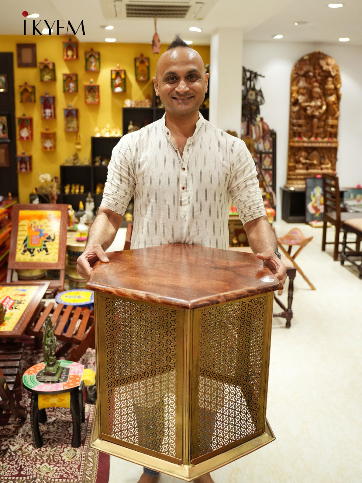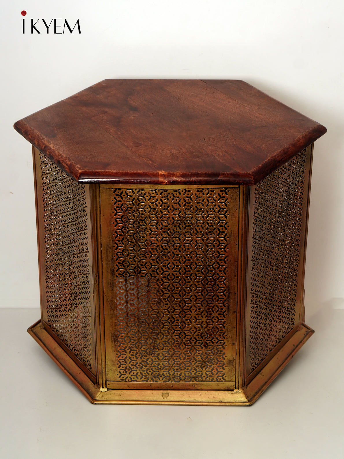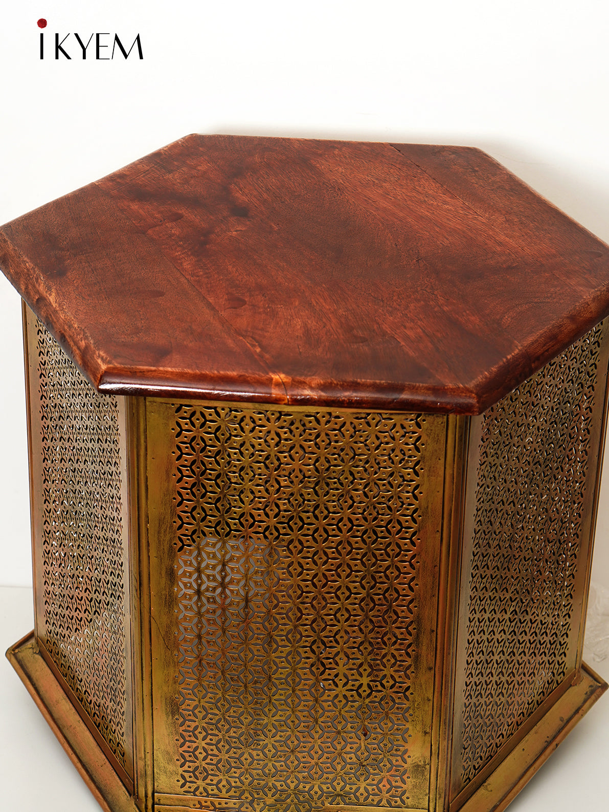Enhance your living space with this exquisite Brass Center Table featuring a finely crafted wooden top. Perfect for both modern and traditional decor, its brass base adds a touch of elegance and durability. The wooden top showcases a natural grain, offering a warm and inviting surface. Ideal for serving, display, or as a conversation piece, this table combines functionality with sophisticated design.