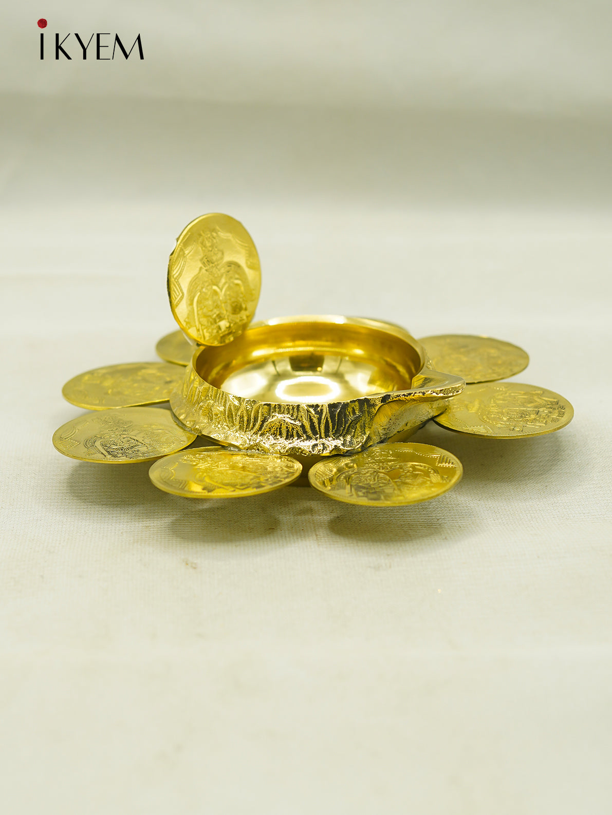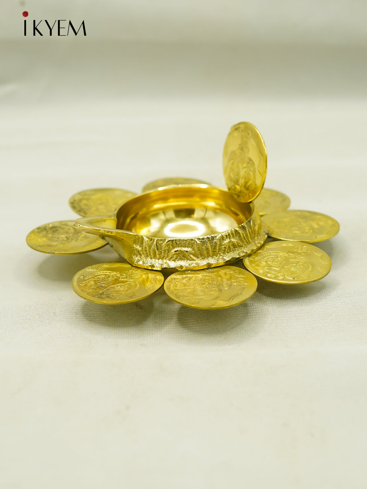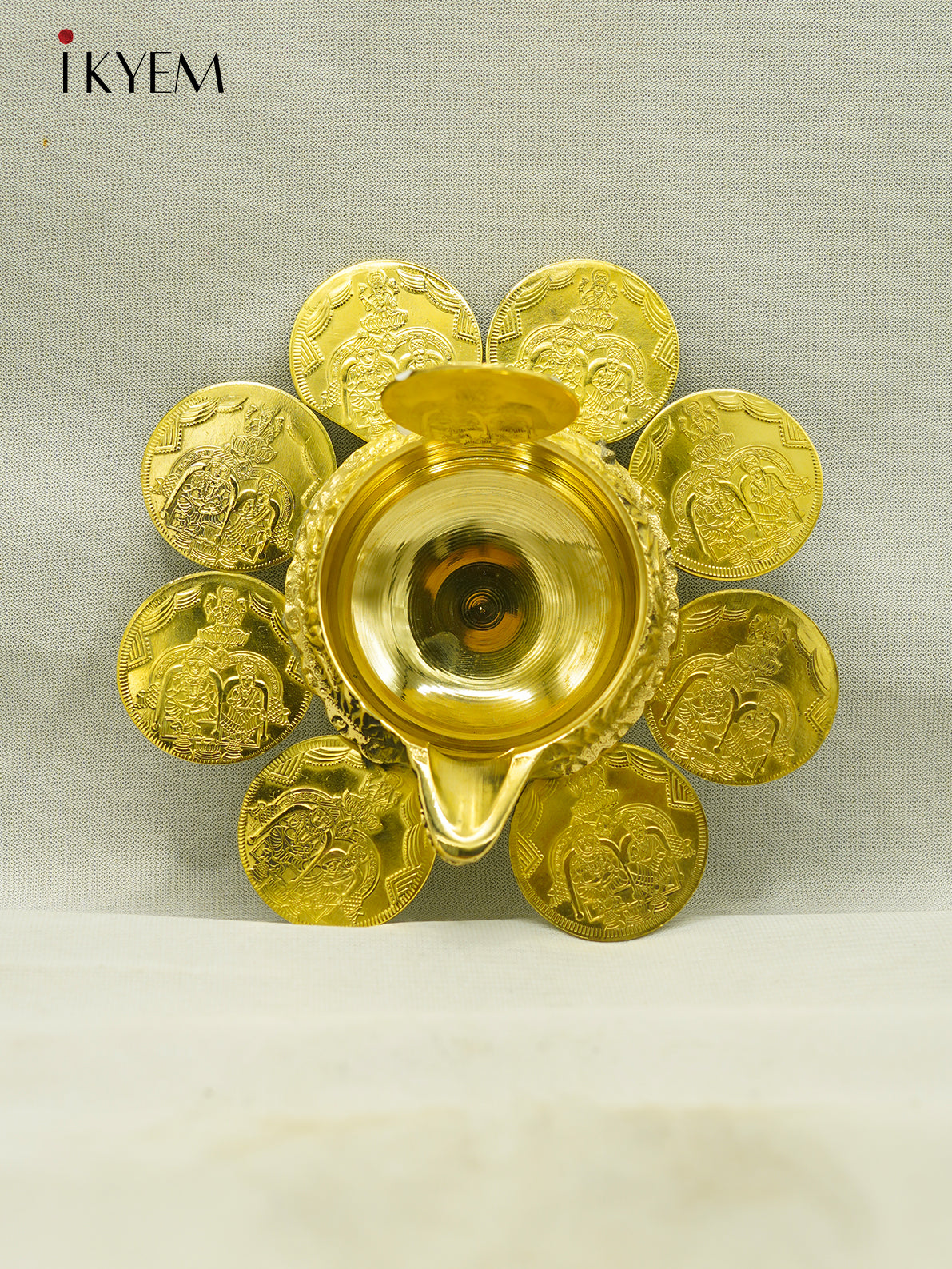 Illuminate your space with our exquisite Brass Coin Vilakku, a symbol of tradition and elegance. Handcrafted from premium brass, this lamp features intricate coin designs that add a touch of heritage charm to any setting. Perfect for auspicious occasions and daily rituals, it brings a warm, golden glow to your home.