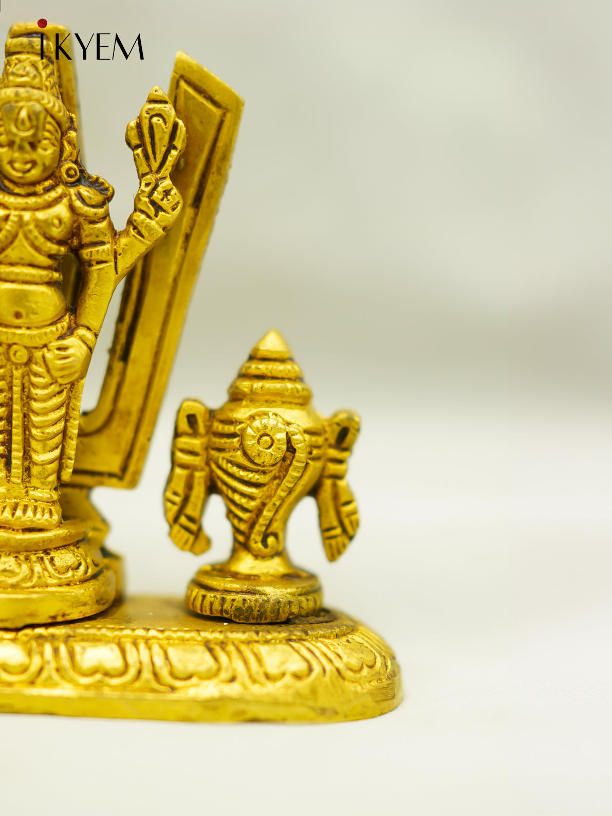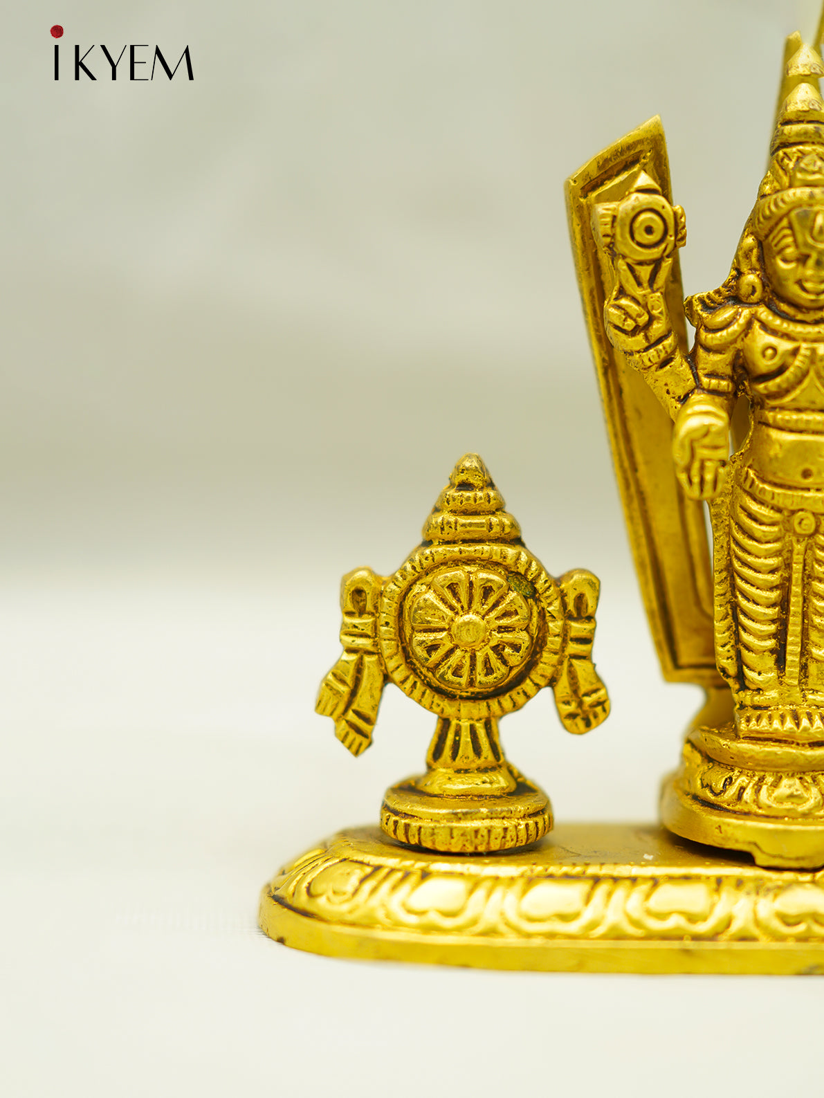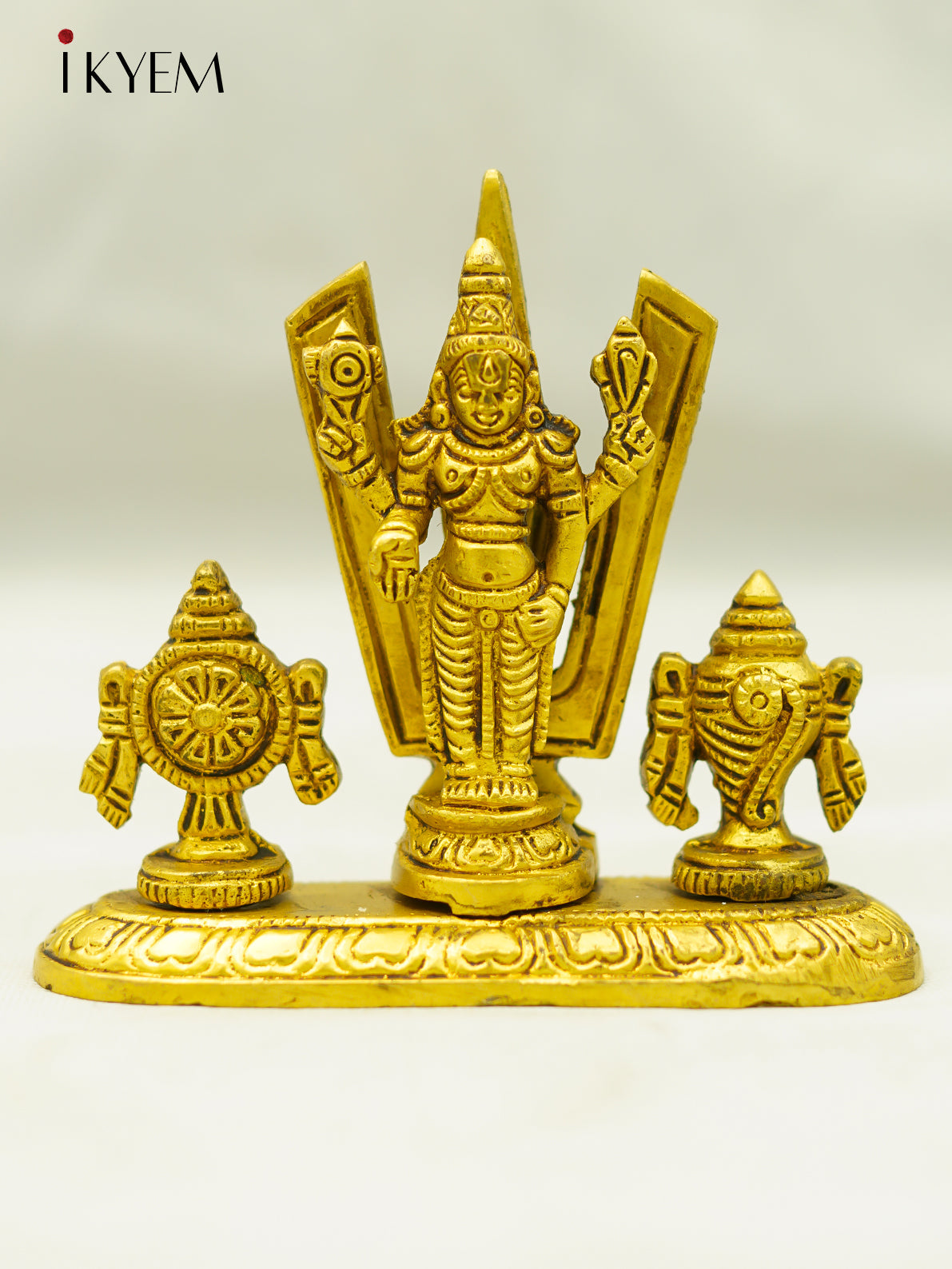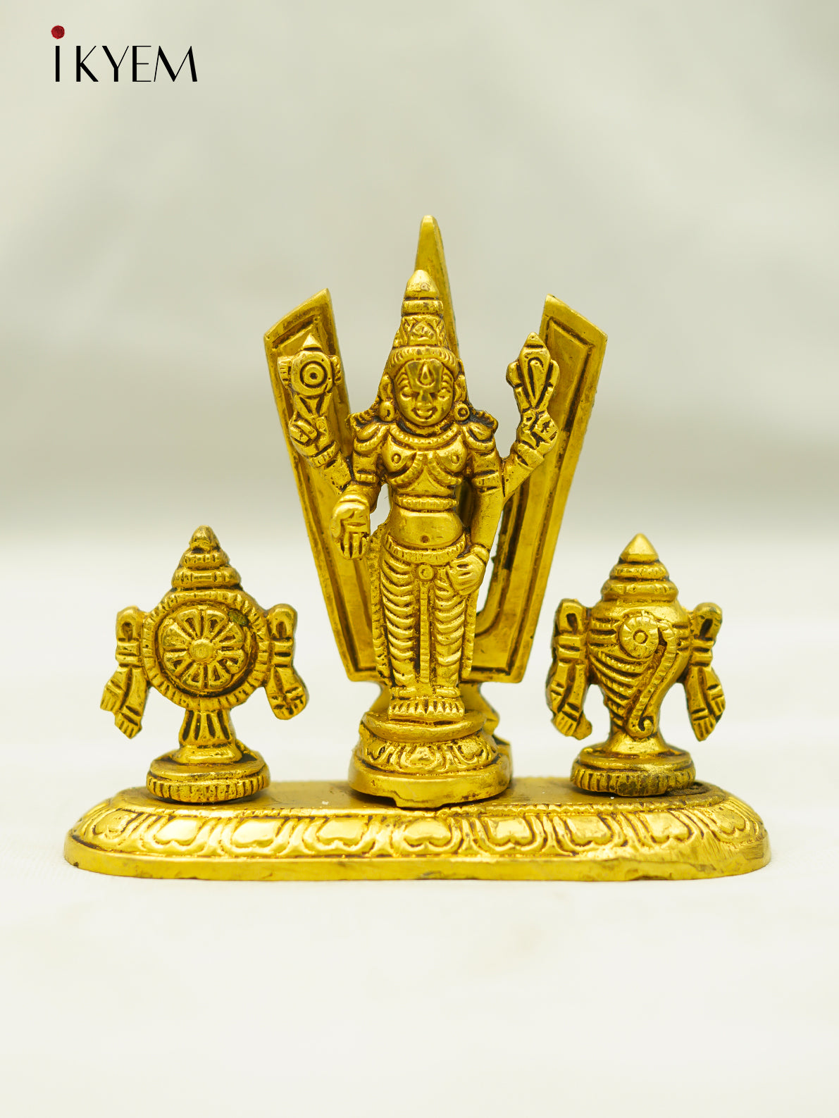 Exquisite Brass Vishnu Namam intricately crafted with traditional symbols of Sangu and Chakram, embodying divine grace and cultural richness. Ideal for sacred spaces, this piece blends spiritual significance with artistic craftsmanship, perfect for devotees