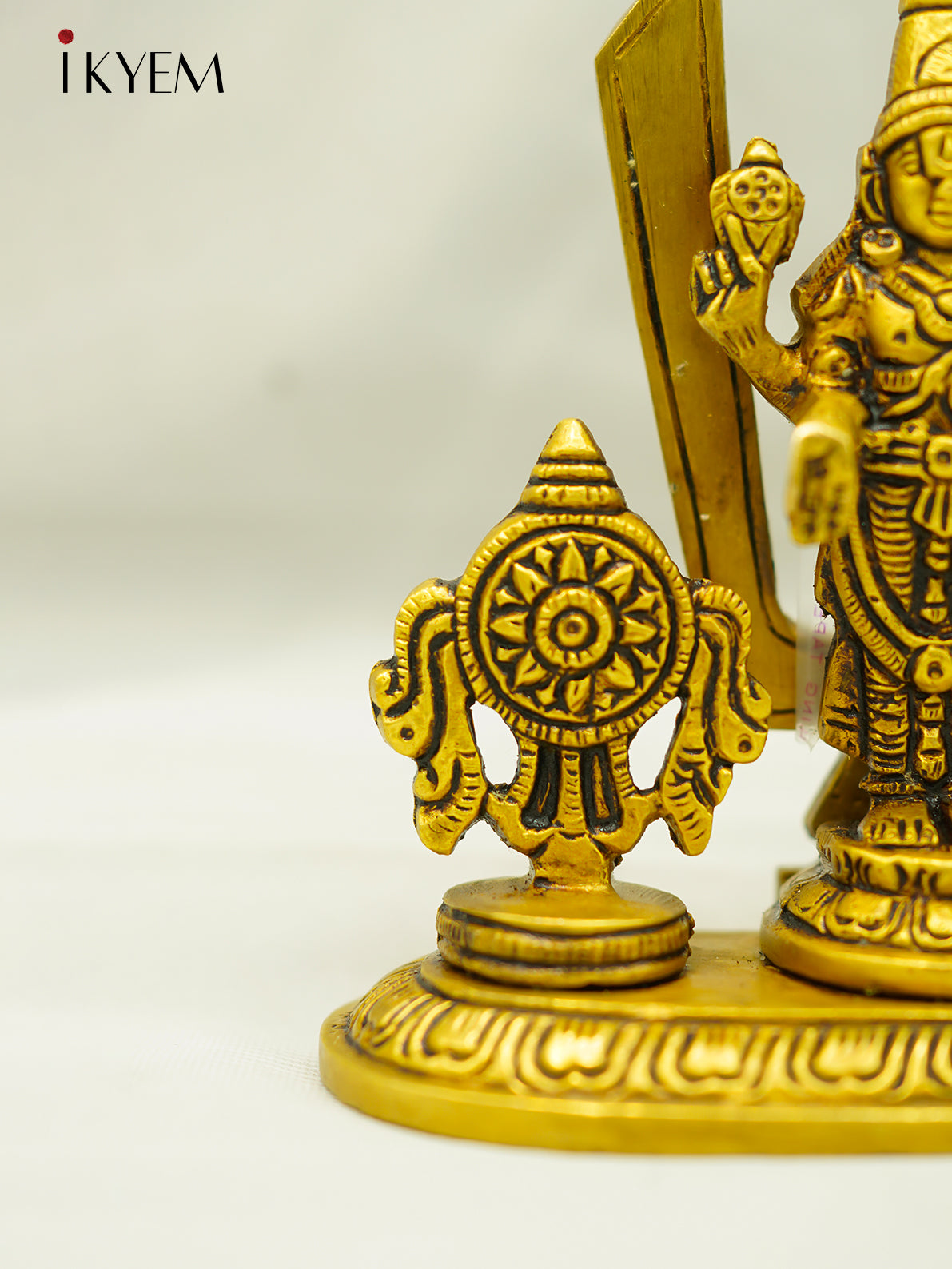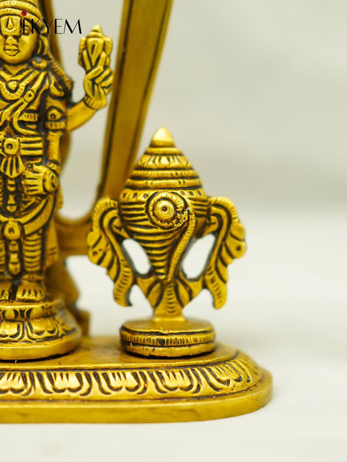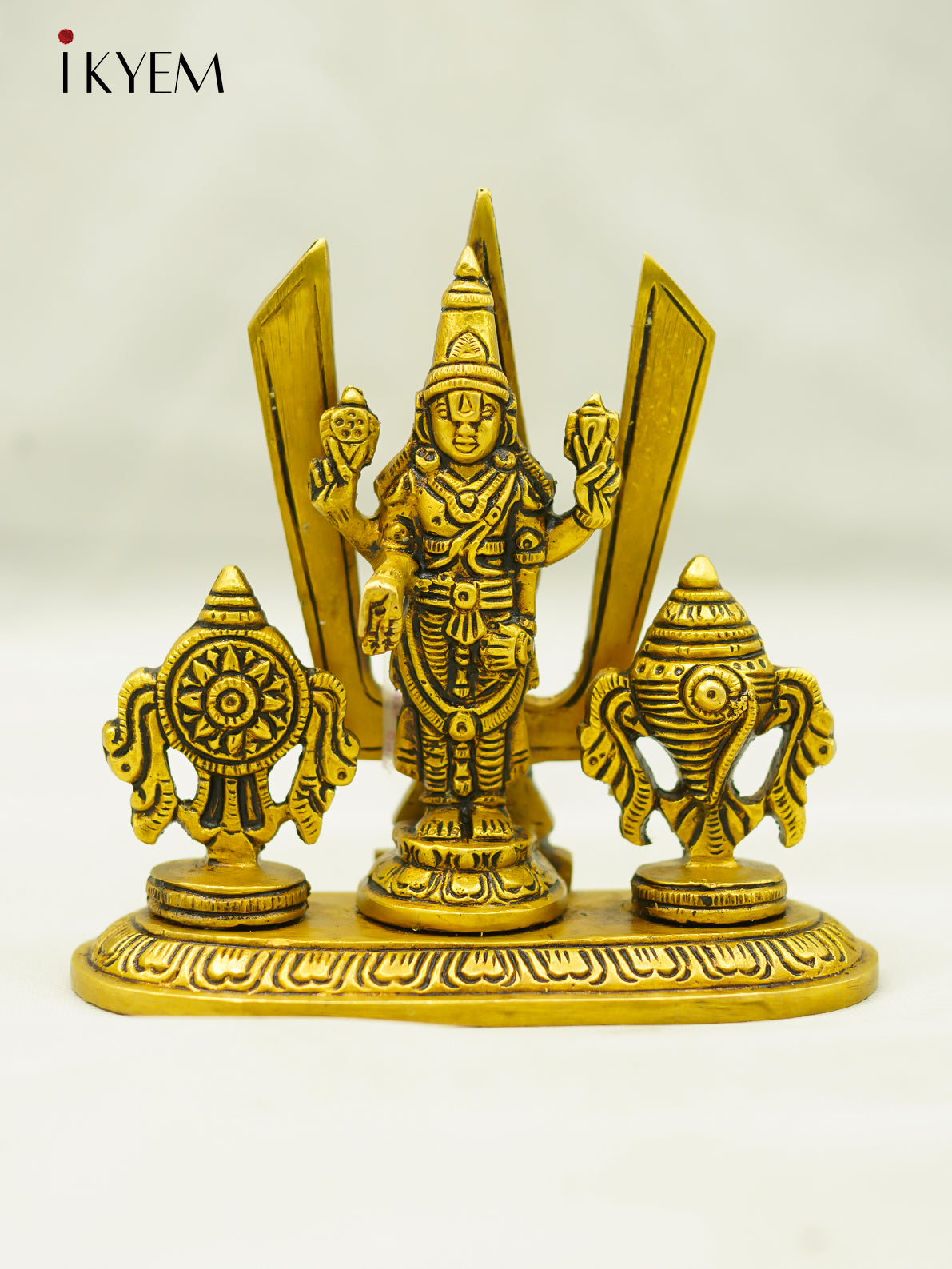 Exquisite Brass Vishnu Namam intricately crafted with traditional symbols of Sangu and Chakram, embodying divine grace and cultural richness. Ideal for sacred spaces, this piece blends spiritual significance with artistic craftsmanship, perfect for devotees and collectors alike
