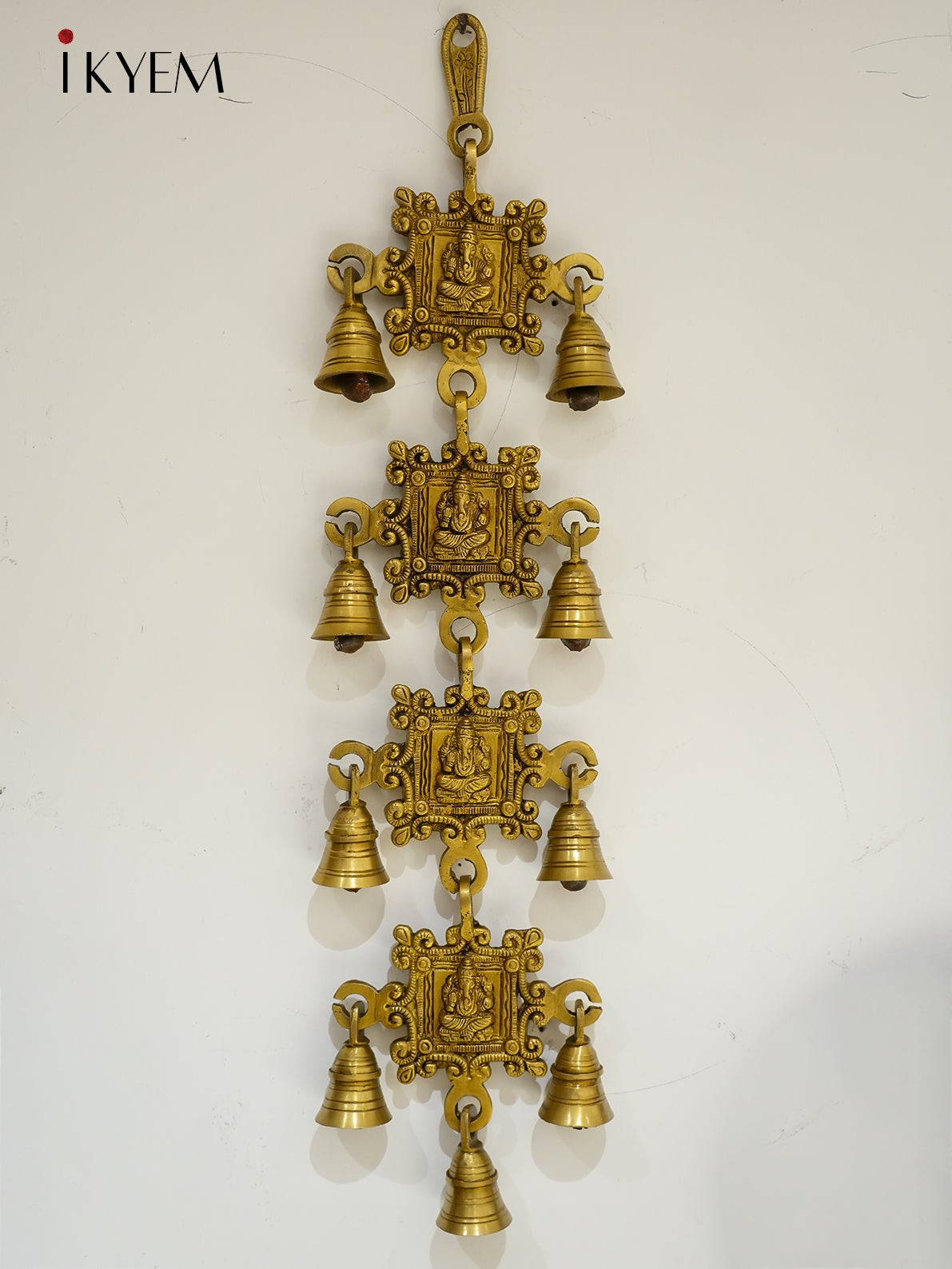Adorn your space with this Ganesha Brass Wall Hanging Bell, showcasing the goddess of prosperity in intricate detail. Crafted from premium brass, this elegant piece emits a melodious chime, bringing serenity and auspicious vibes to your home. Ideal for enhancing your decor with divine grace and traditional charm.