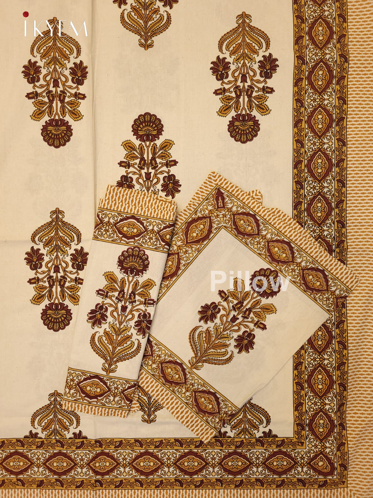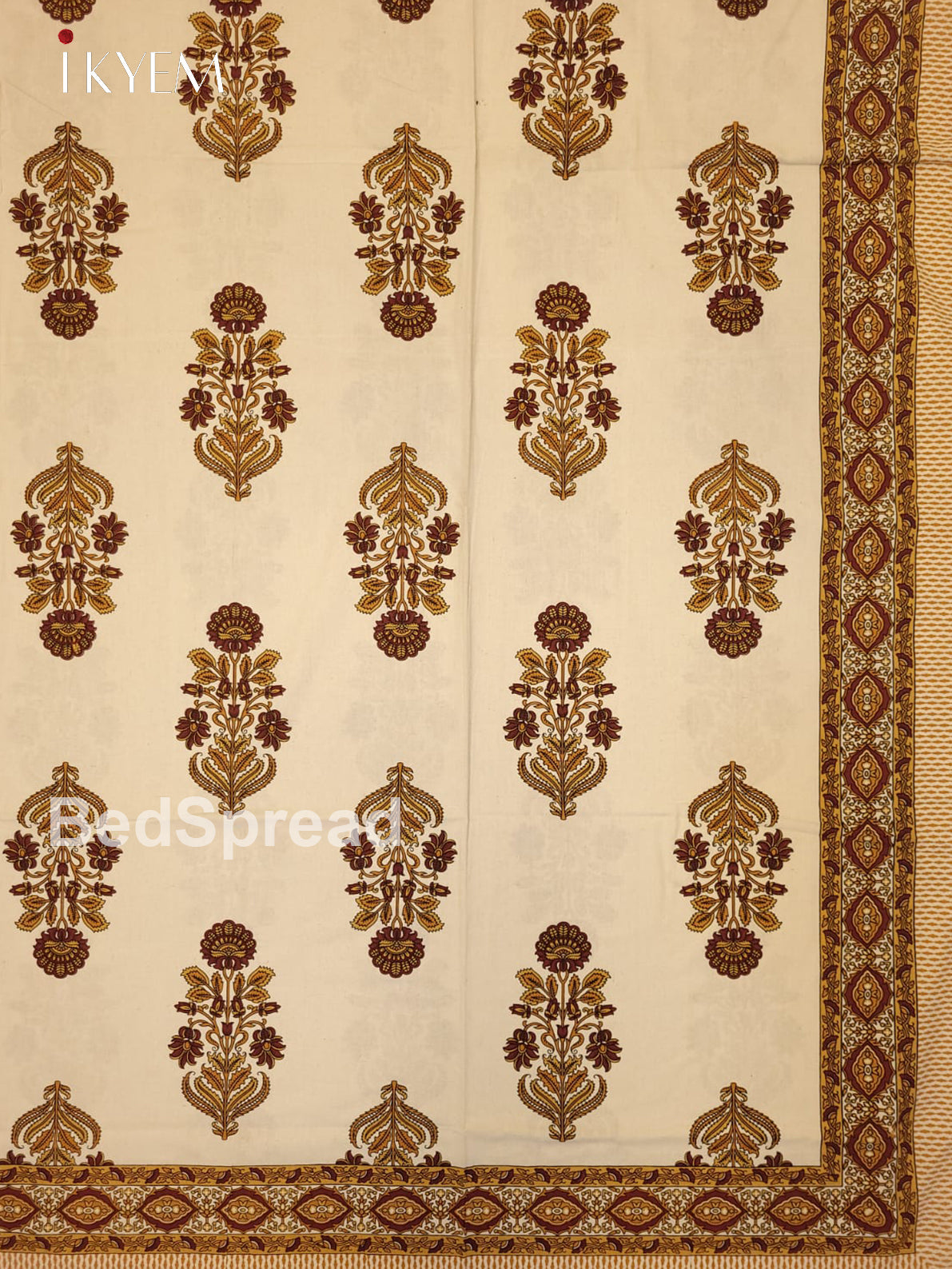 Experience the pinnacle of comfort and elegance with our Cream & Brown Jaipuri Printed Bedspread, complete with two matching pillow covers. Adorned with stunning floral designs and vibrant hues, this bedspread is crafted from high-quality cotton for the ultimate combination of style and coziness
