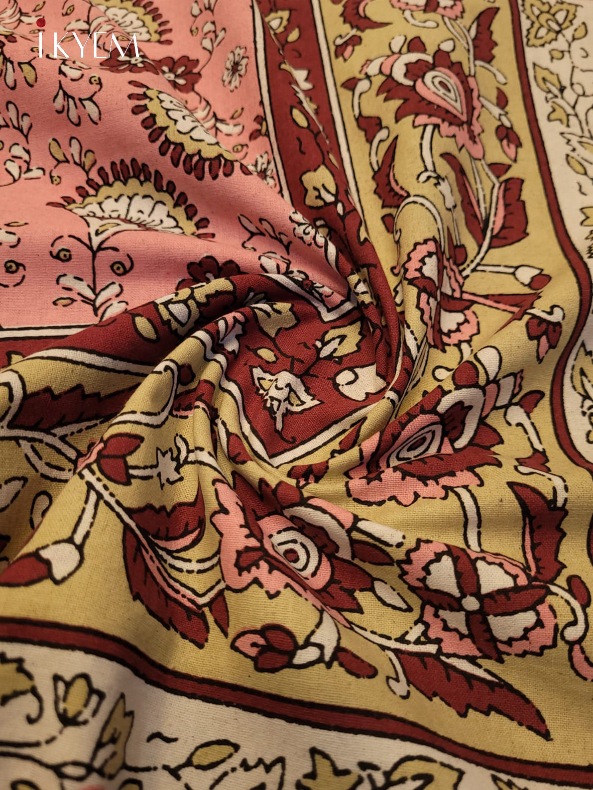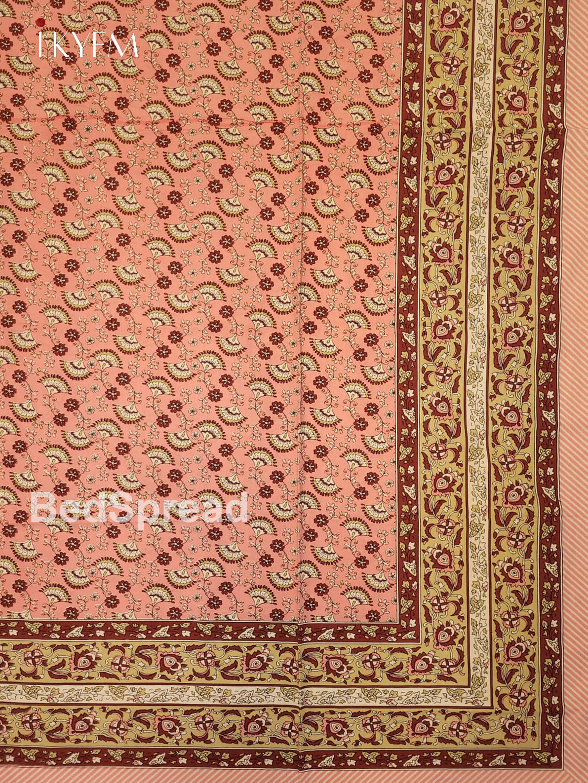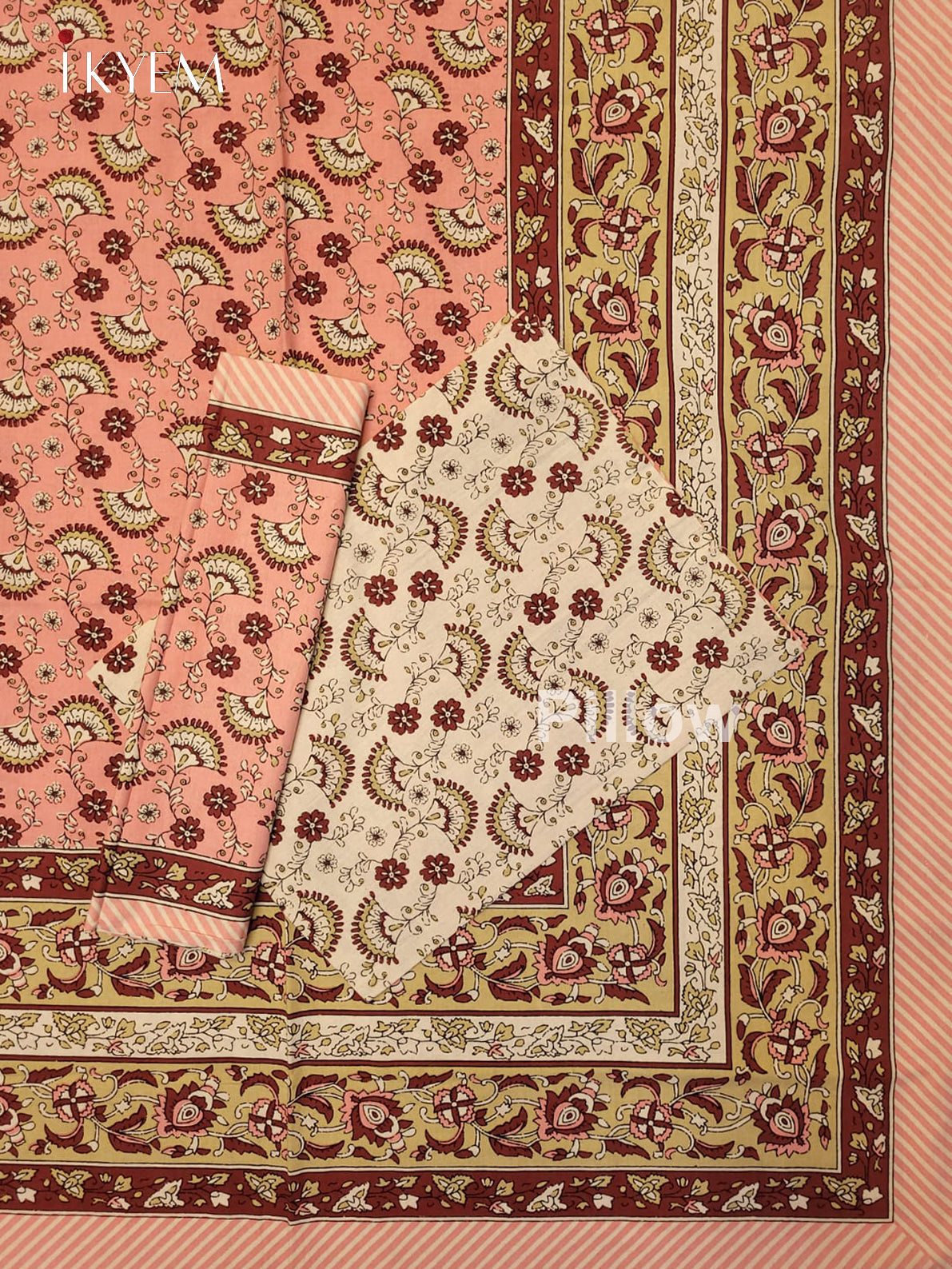 Experience the pinnacle of comfort and elegance with our Peach & Cream Jaipuri Printed Bedspread, complete with two matching pillow covers. Adorned with stunning floral designs and vibrant hues, this bedspread is crafted from high-quality cotton for the ultimate combination of style and coziness