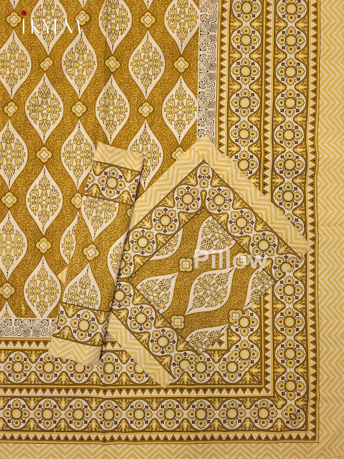 Experience the pinnacle of comfort and elegance with our Cream & Mustard Jaipuri Printed Bedspread, complete with two matching pillow covers. Adorned with stunning floral designs and vibrant hues, this bedspread is crafted from high-quality cotton for the ultimate combination of style and coziness