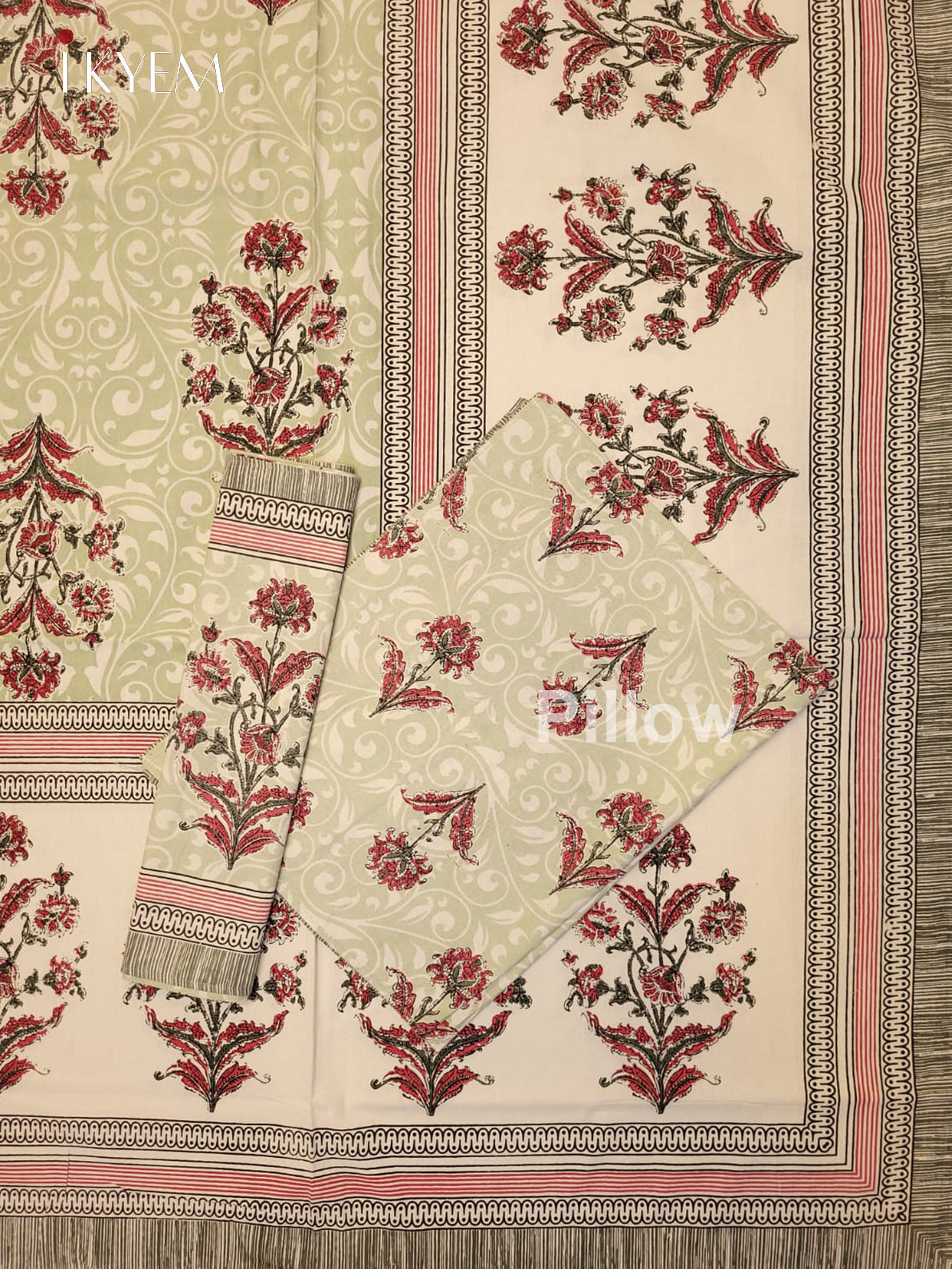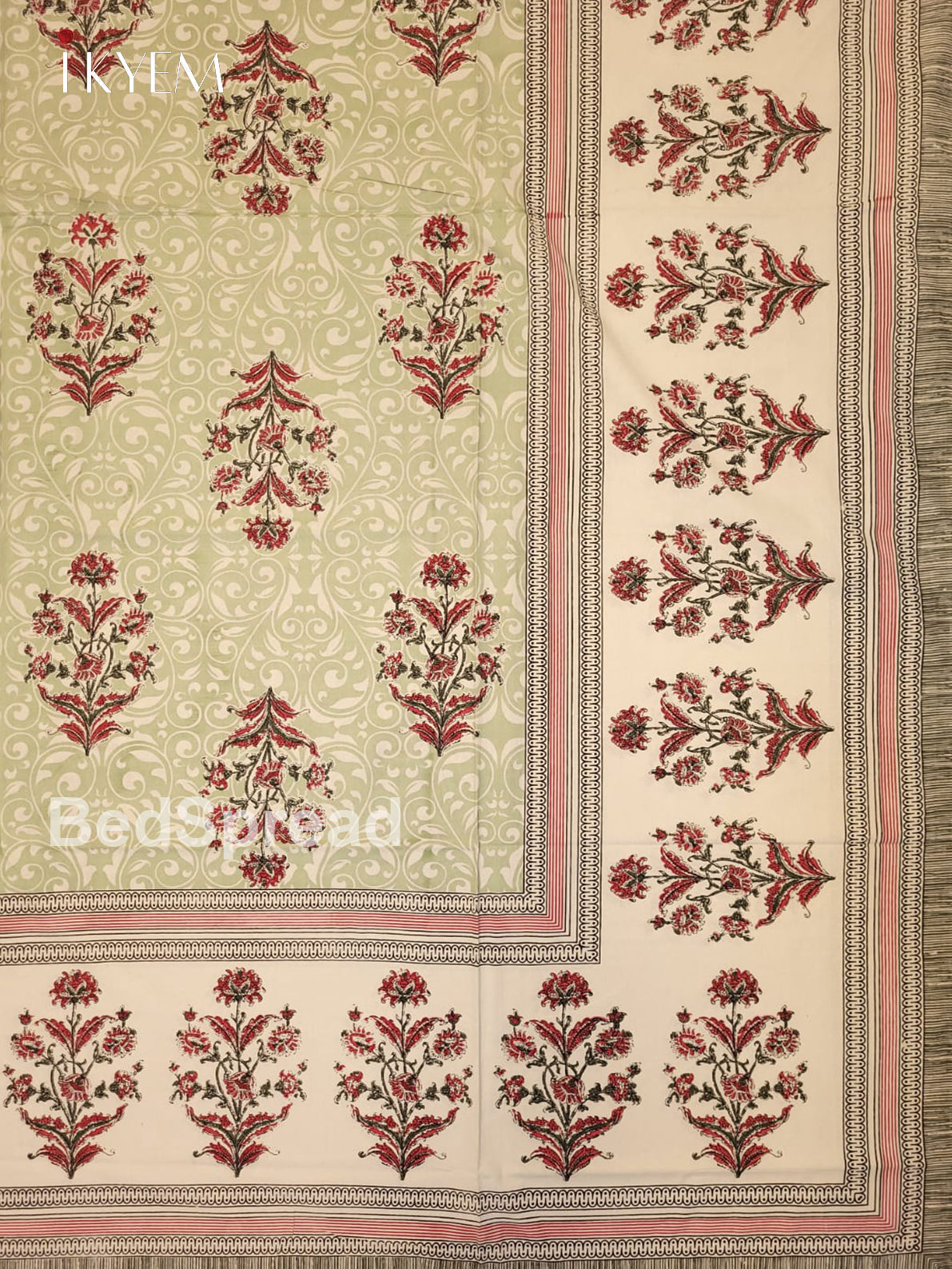 Experience the pinnacle of comfort and elegance with our  Cream & Peach Jaipuri Printed Bedspread, complete with two matching pillow covers. Adorned with stunning floral designs and vibrant hues, this bedspread is crafted from high-quality cotton for the ultimate combination of style and coziness
