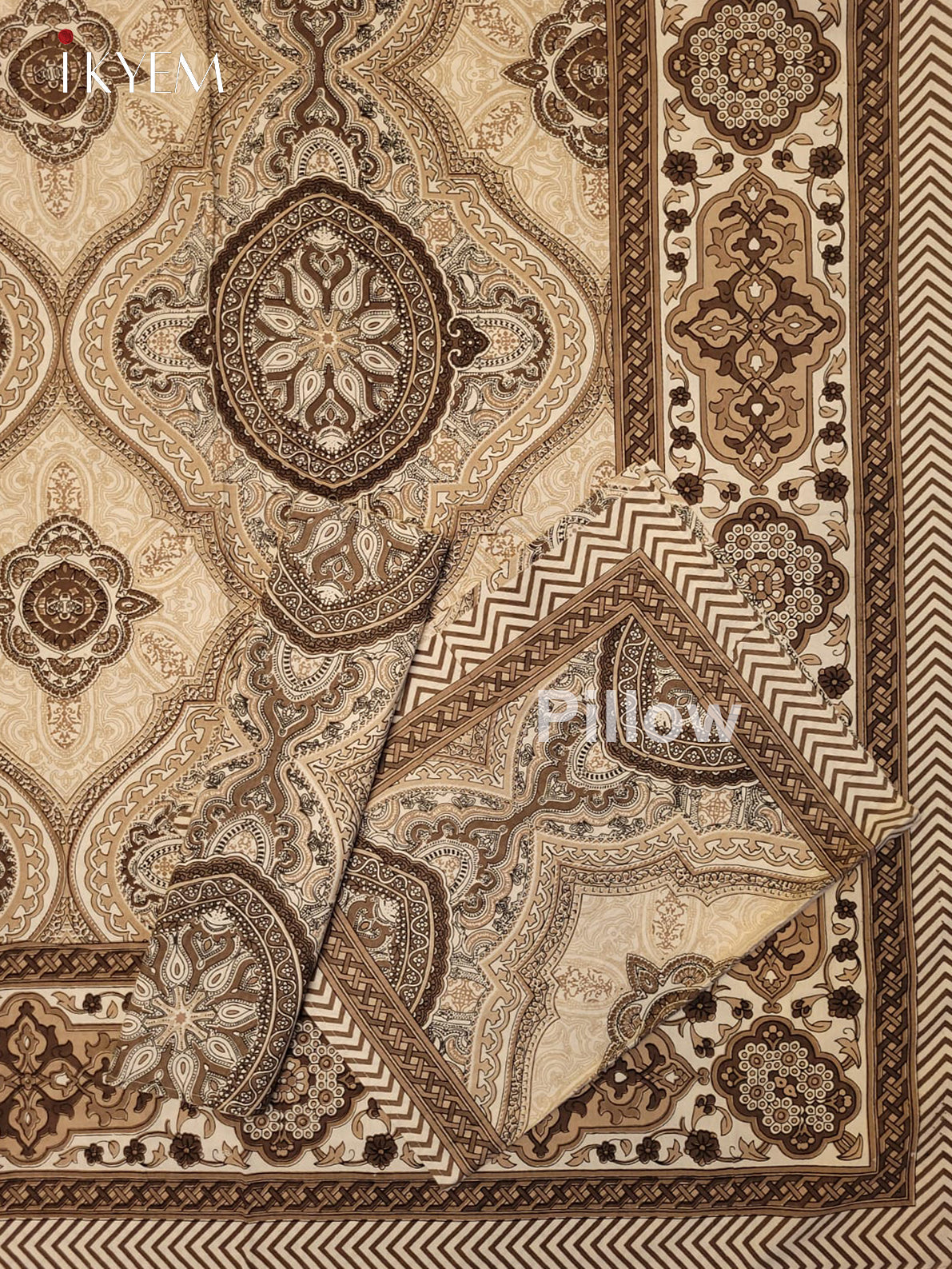 Experience the pinnacle of comfort and elegance with our brown & Cream Jaipuri Printed Bedspread, complete with two matching pillow covers. Adorned with stunning floral designs and vibrant hues, this bedspread is crafted from high-quality cotton for the ultimate combination of style and coziness
