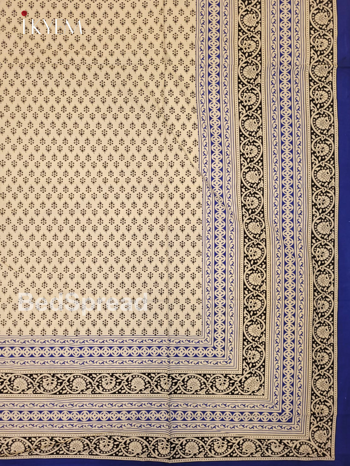 Cream & Blue - Bed Spread