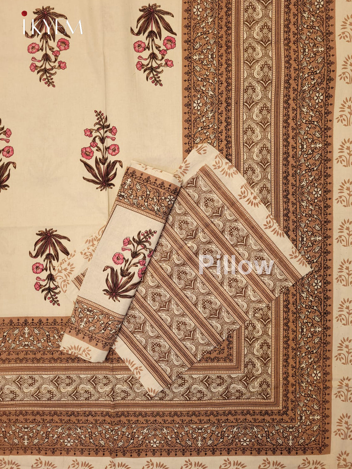 Experience the pinnacle of comfort and elegance with our Brown & Cream Jaipuri Printed Bedspread, complete with two matching pillow covers. Adorned with stunning floral designs and vibrant hues, this bedspread is crafted from high-quality cotton for the ultimate combination of style and coziness