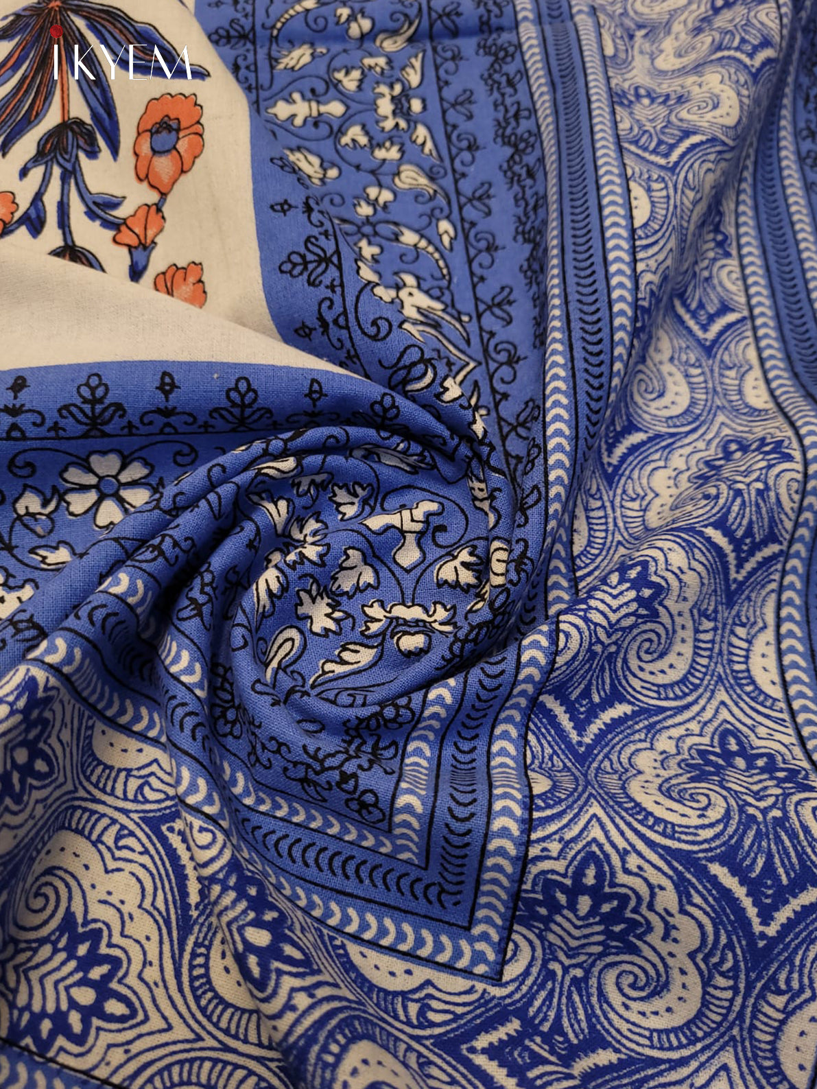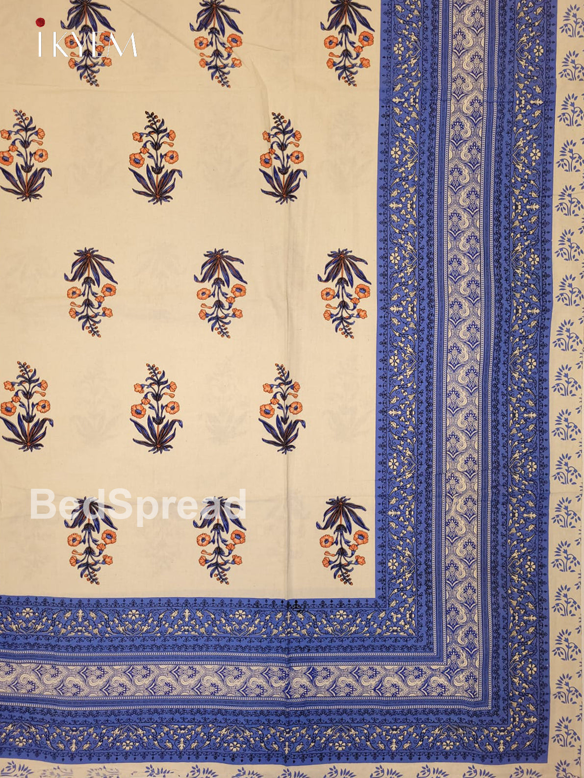 Experience the pinnacle of comfort and elegance with our   Blue & Cream Jaipuri Printed Bedspread, complete with two matching pillow covers. Adorned with stunning floral designs and vibrant hues, this bedspread is crafted from high-quality cotton for the ultimate combination of style and coziness