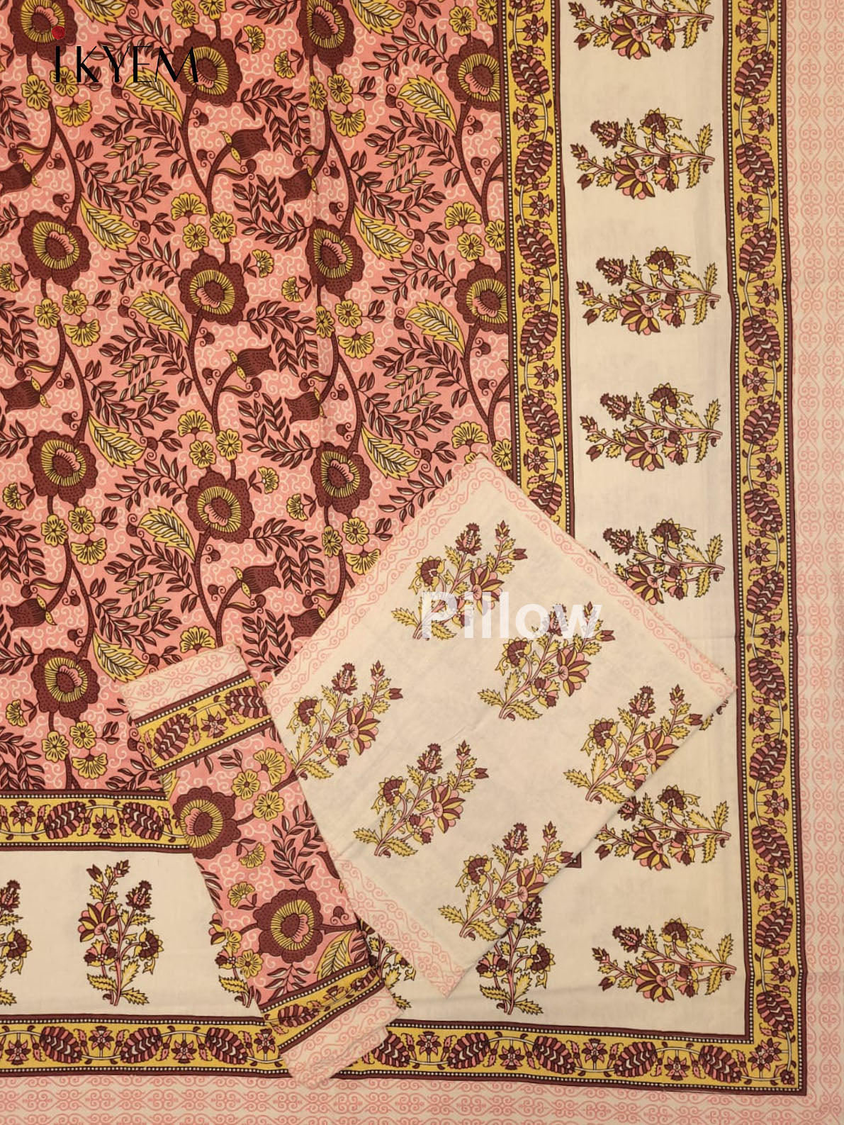 Experience the pinnacle of comfort and elegance with our Cream & Pink Jaipuri Printed Bedspread, complete with two matching pillow covers. Adorned with stunning floral designs and vibrant hues, this bedspread is crafted from high-quality cotton for the ultimate combination of style and coziness