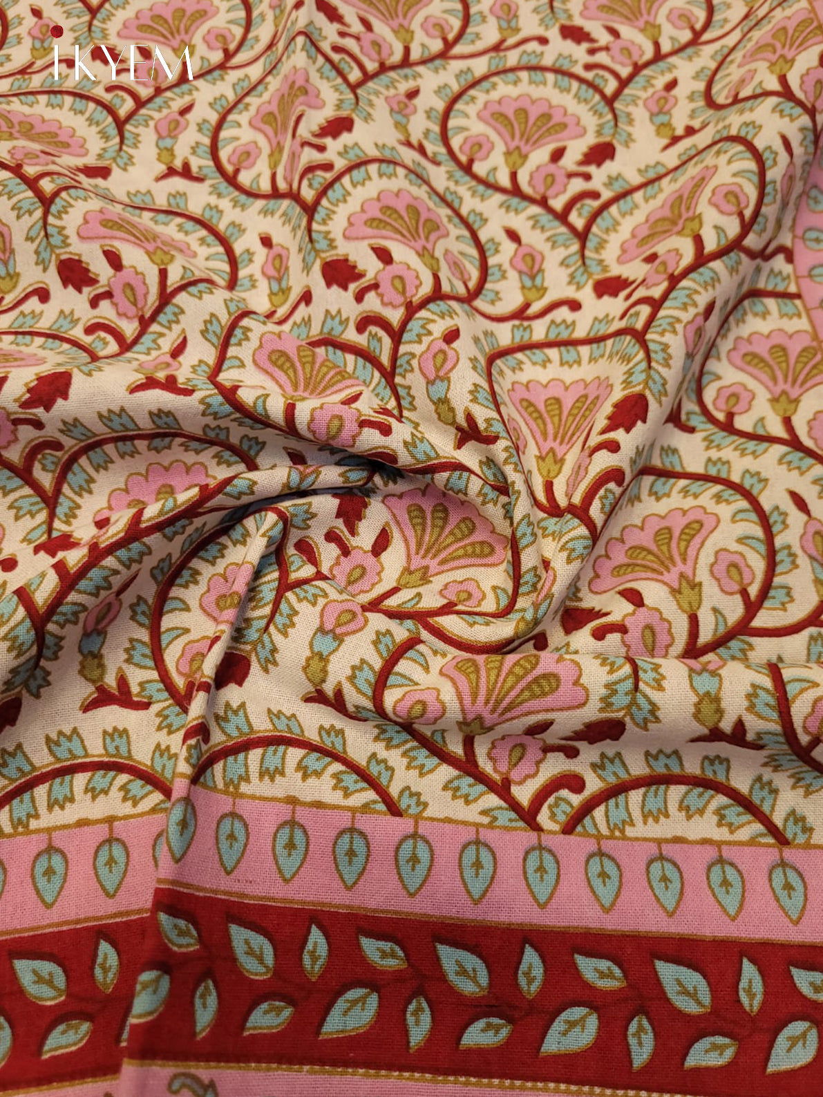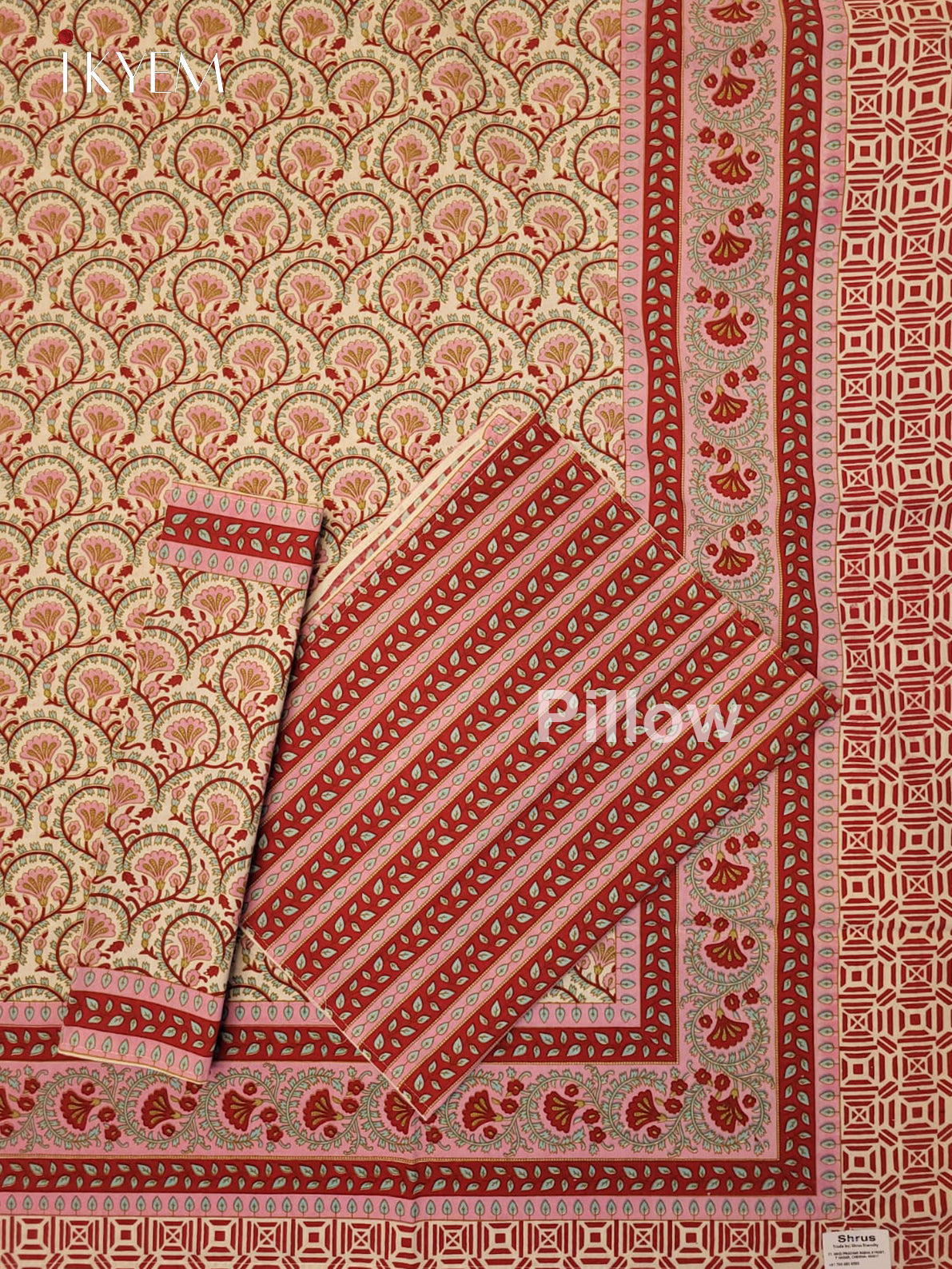 Experience the pinnacle of comfort and elegance with our  Pink & Cream Jaipuri Printed Bedspread, complete with two matching pillow covers. Adorned with stunning floral designs and vibrant hues, this bedspread is crafted from high-quality cotton for the ultimate combination of style and coziness