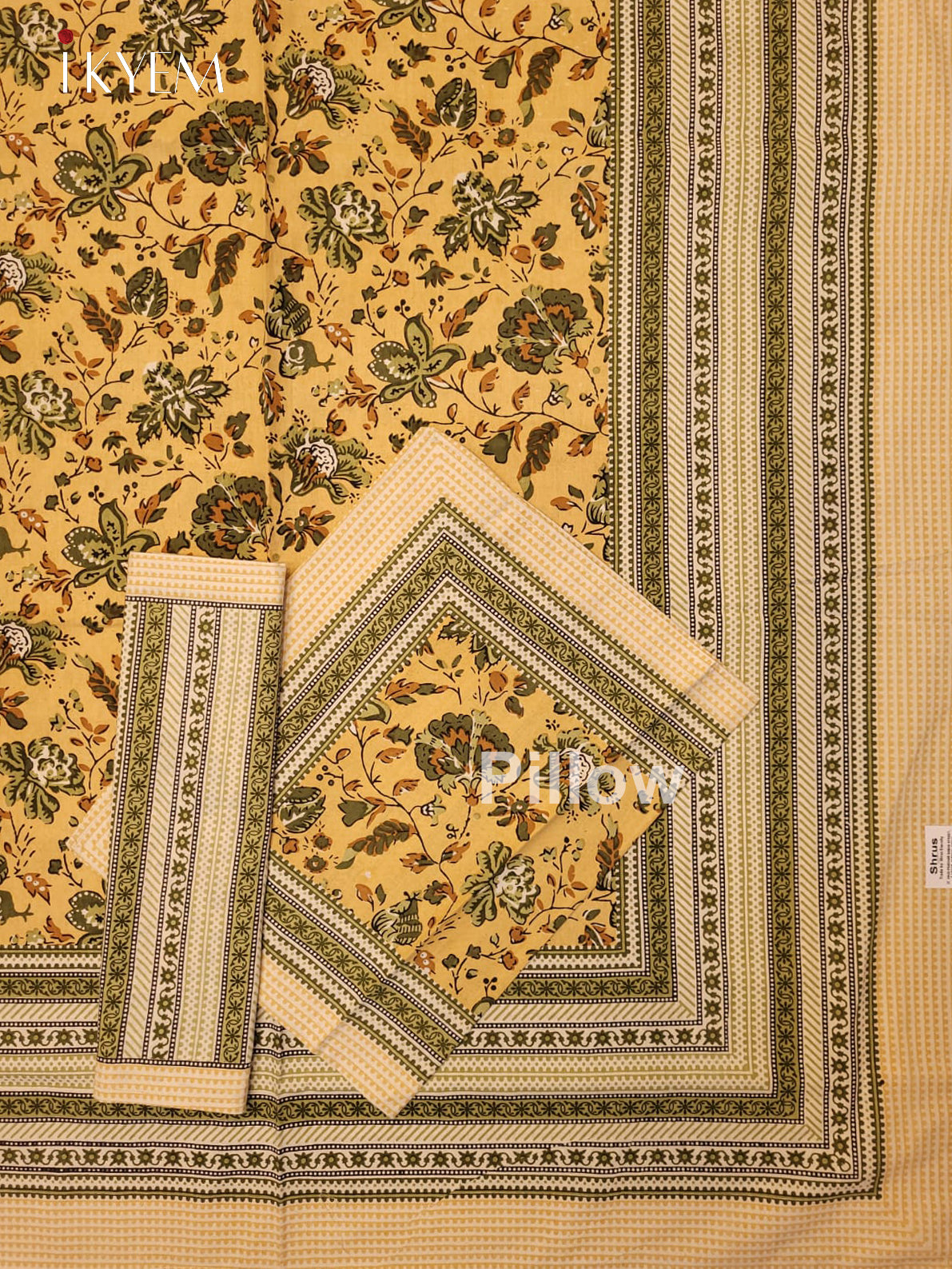 Experience the pinnacle of comfort and elegance with our Yellow & Green Jaipuri Printed Bedspread, complete with two matching pillow covers. Adorned with stunning floral designs and vibrant hues, this bedspread is crafted from high-quality cotton for the ultimate combination of style and coziness