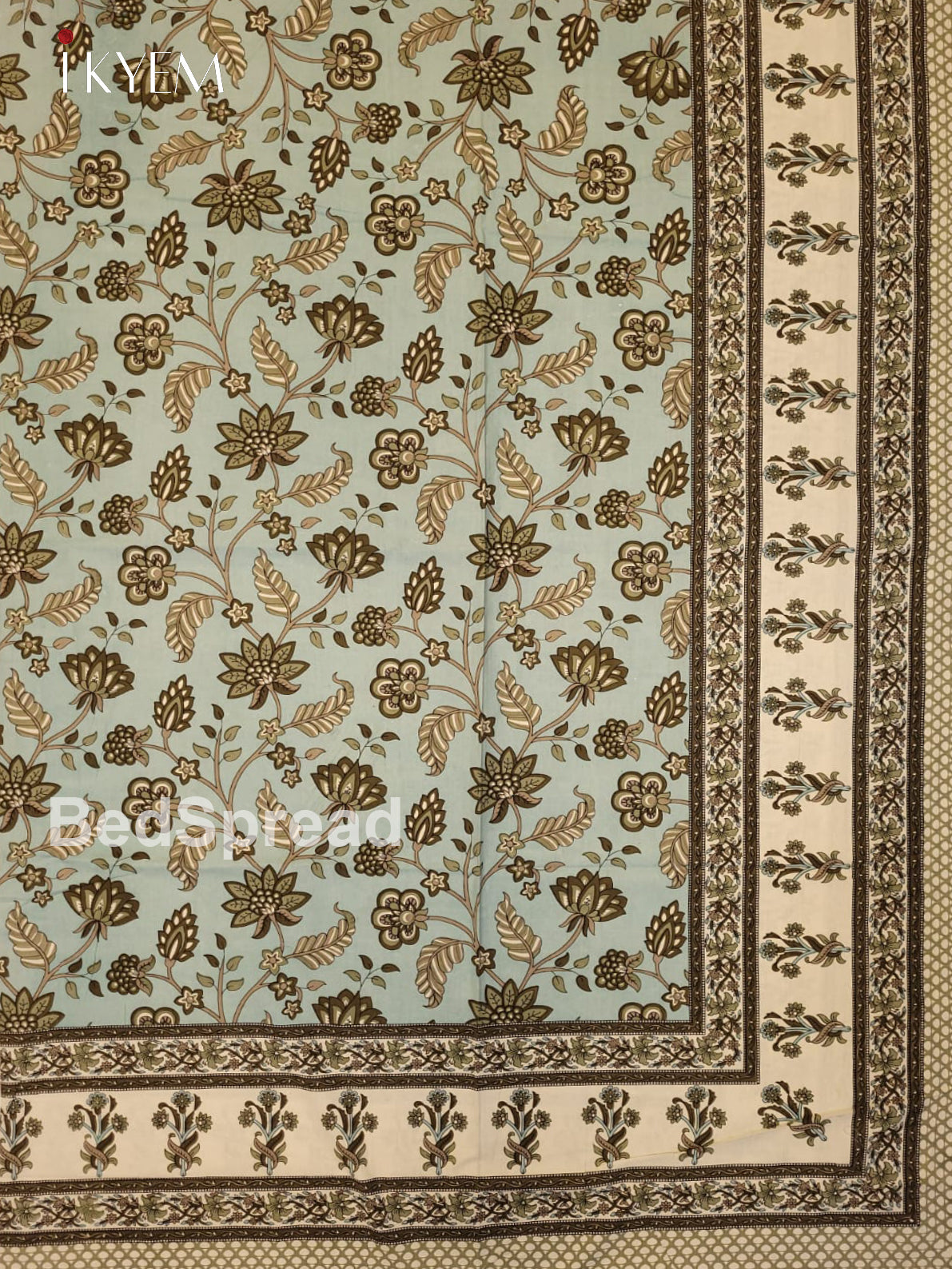 Cream and Blue - Bed Spread