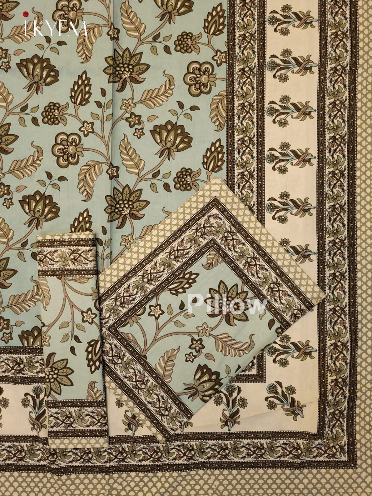 Experience the pinnacle of comfort and elegance with our Cream & Blue Jaipuri Printed Bedspread, complete with two matching pillow covers. Adorned with stunning floral designs and vibrant hues, this bedspread is crafted from high-quality cotton for the ultimate combination of style and coziness