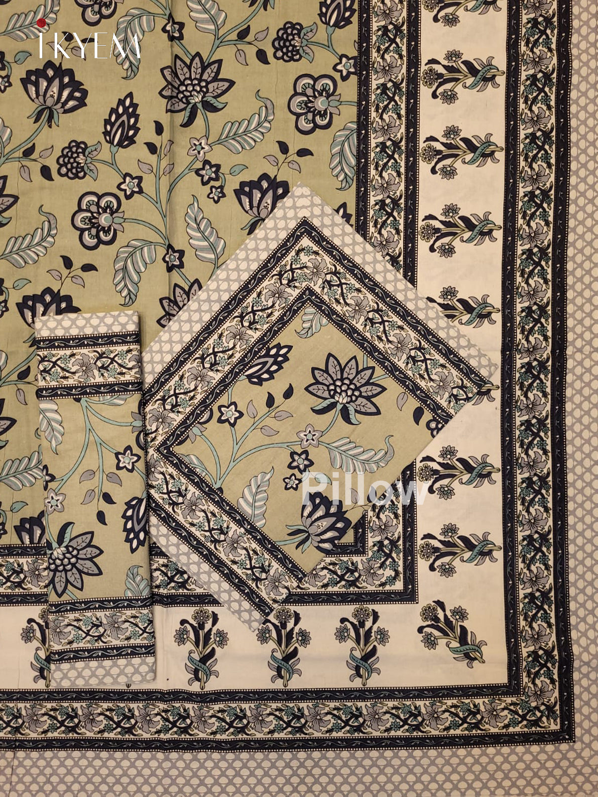 Experience the pinnacle of comfort and elegance with our Cream & Pista Jaipuri Printed Bedspread, complete with two matching pillow covers. Adorned with stunning floral designs and vibrant hues, this bedspread is crafted from high-quality cotton for the ultimate combination of style and coziness