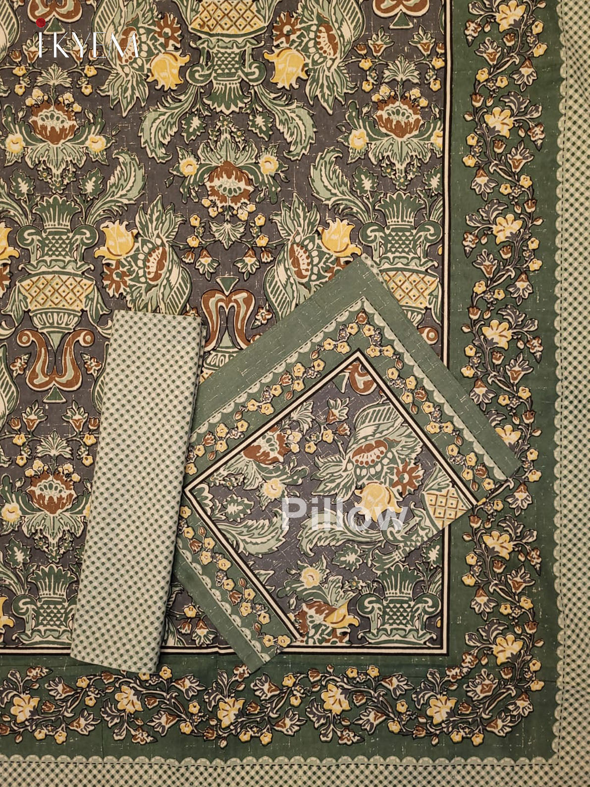Experience the pinnacle of comfort and elegance with our Grey & Green Jaipuri Printed Bedspread, complete with two matching pillow covers. Adorned with stunning floral designs and vibrant hues, this bedspread is crafted from high-quality cotton for the ultimate combination of style and coziness