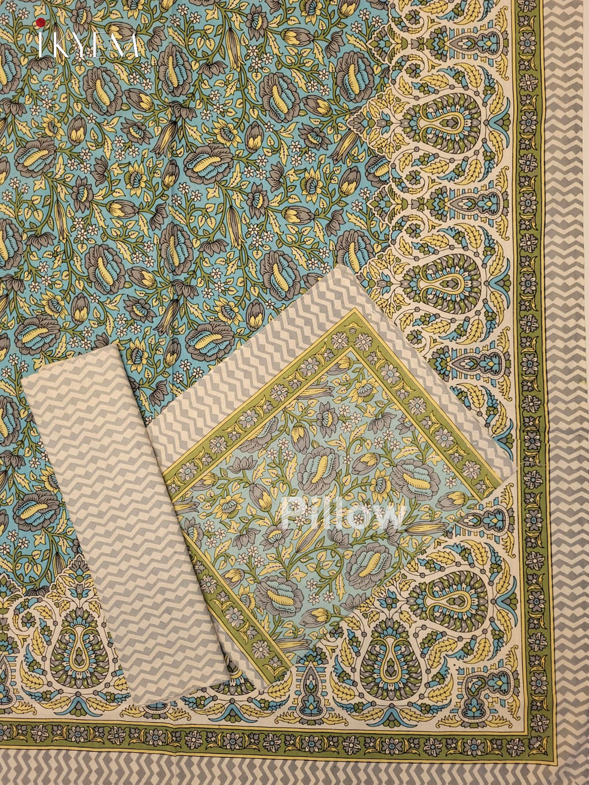 Experience the pinnacle of comfort and elegance with our  Cream & Green Jaipuri Printed Bedspread, complete with two matching pillow covers. Adorned with stunning floral designs and vibrant hues, this bedspread is crafted from high-quality cotton for the ultimate combination of style and coziness