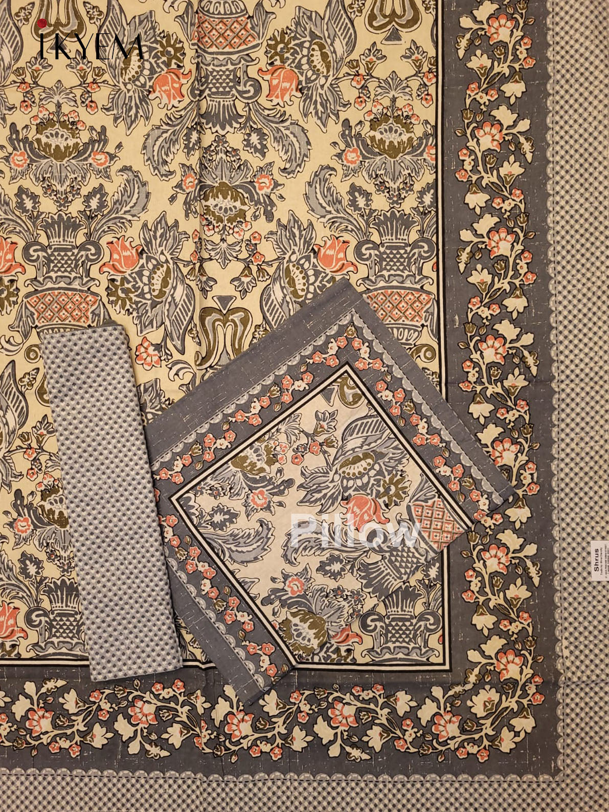 Experience the pinnacle of comfort and elegance with our  Grey & Cream Jaipuri Printed Bedspread, complete with two matching pillow covers. Adorned with stunning floral designs and vibrant hues, this bedspread is crafted from high-quality cotton for the ultimate combination of style and coziness