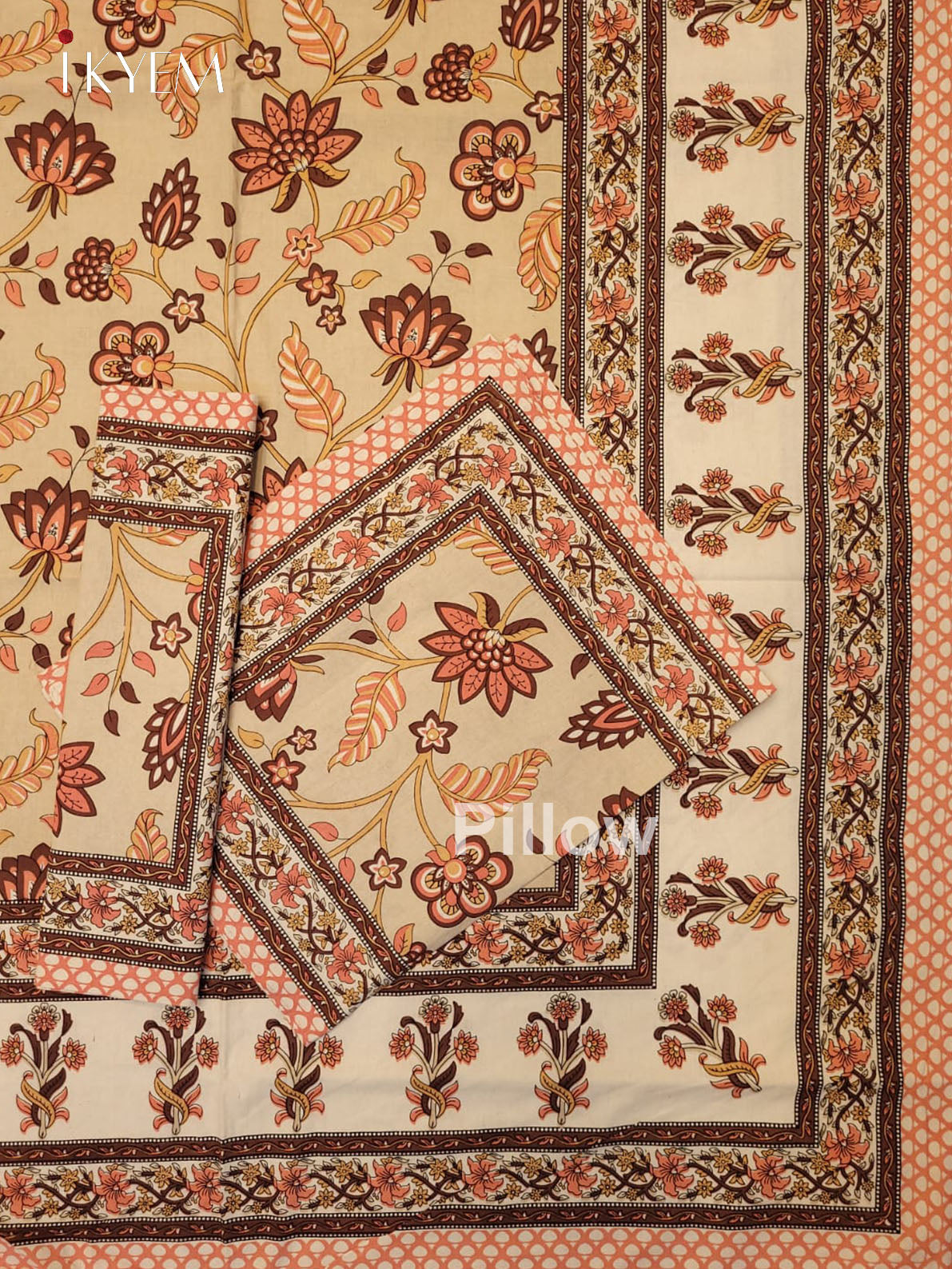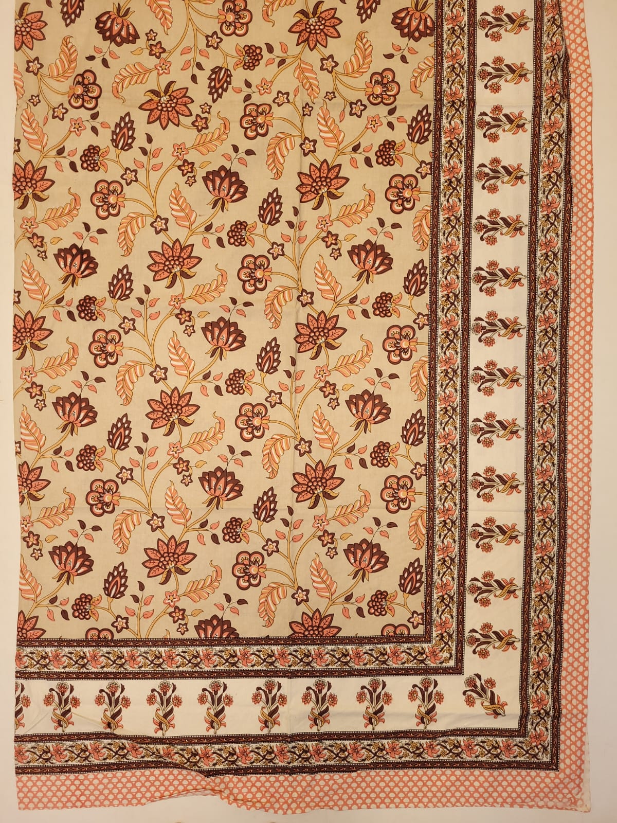 Experience the pinnacle of comfort and elegance with our Grey & Peach Jaipuri Printed Bedspread, complete with two matching pillow covers. Adorned with stunning floral designs and vibrant hues, this bedspread is crafted from high-quality cotton for the ultimate combination of style and coziness
