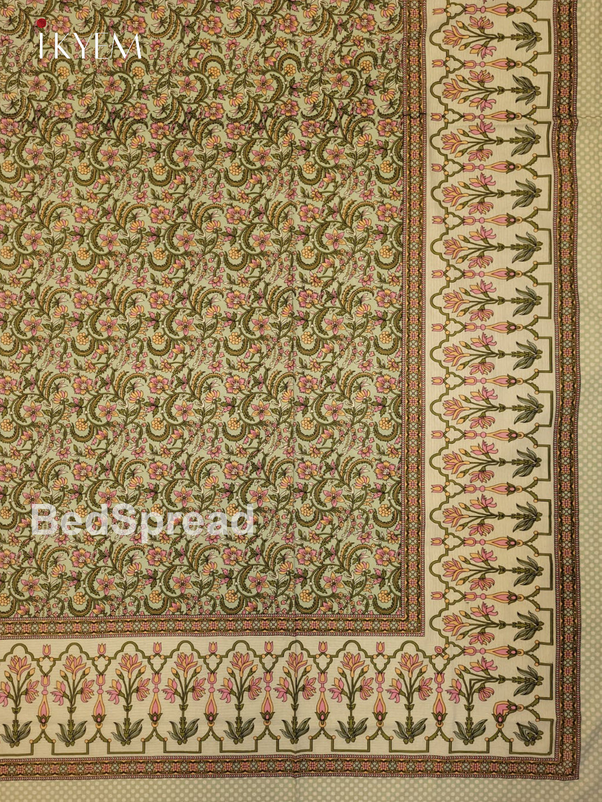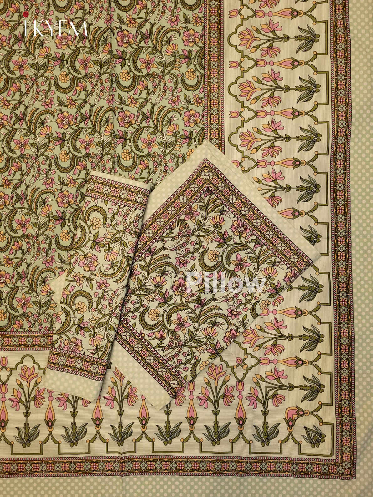 Experience the pinnacle of comfort and elegance with our  Green & Pink  Jaipuri Printed Bedspread, complete with two matching pillow covers. Adorned with stunning floral designs and vibrant hues, this bedspread is crafted from high-quality cotton for the ultimate combination of style and coziness