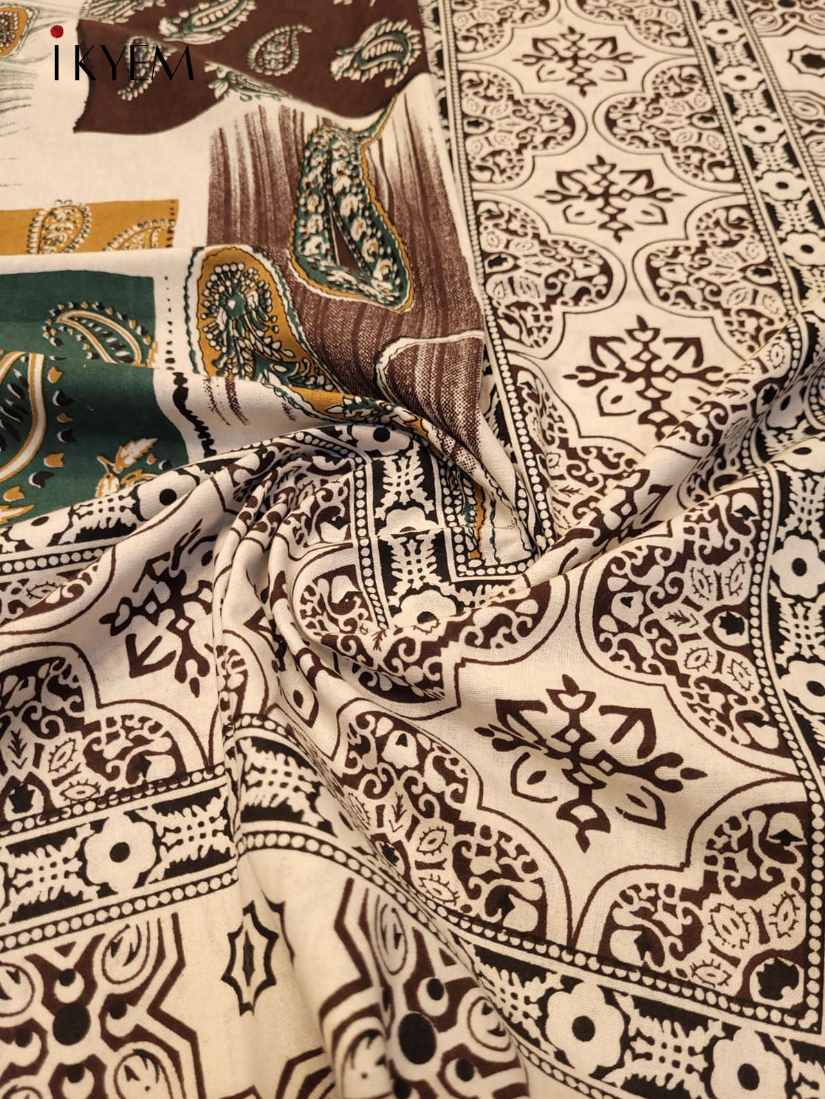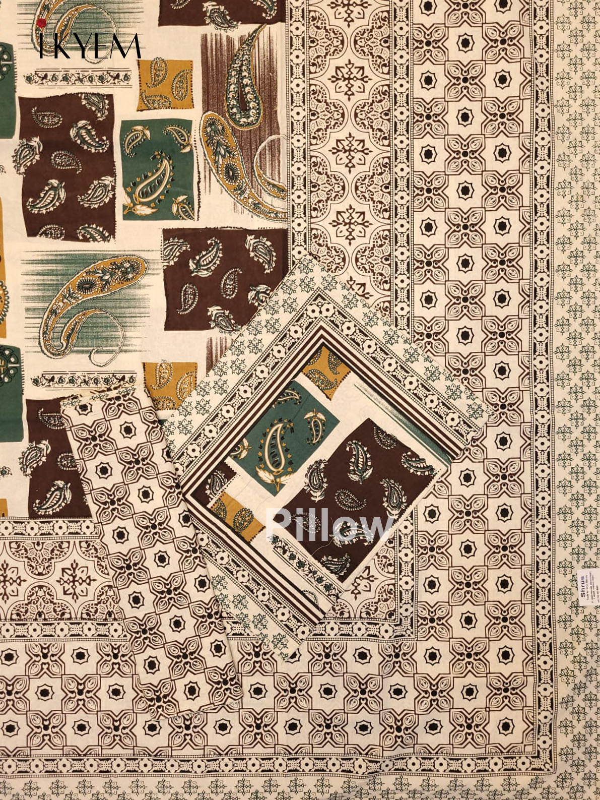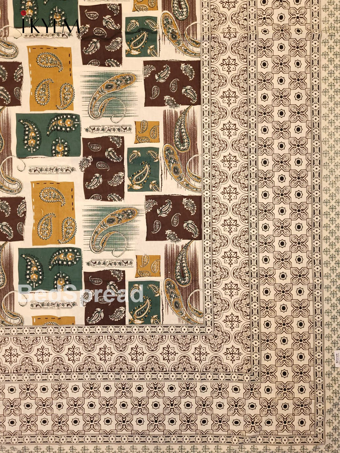 Experience the pinnacle of comfort and elegance with our Cream & Brown Jaipuri Printed Bedspread, complete with two matching pillow covers. Adorned with stunning floral designs and vibrant hues, this bedspread is crafted from high-quality cotton for the ultimate combination of style and coziness