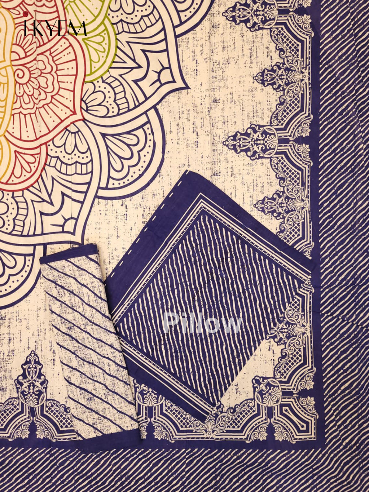 Experience the pinnacle of comfort and elegance with our  Cream & Blue Jaipuri Printed Bedspread, complete with two matching pillow covers. Adorned with stunning floral designs and vibrant hues, this bedspread is crafted from high-quality cotton for the ultimate combination of style and coziness