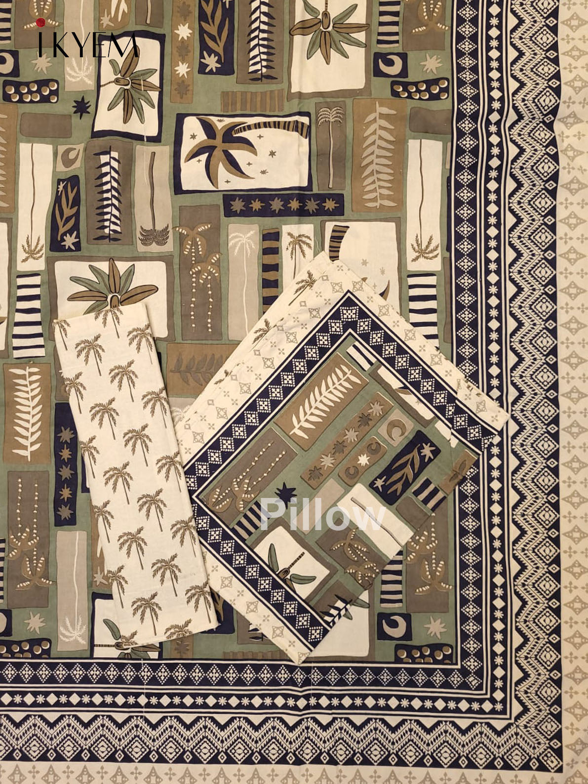 Experience the pinnacle of comfort and elegance with our cream & Blue Jaipuri Printed Bedspread, complete with two matching pillow covers. Adorned with stunning floral designs and vibrant hues, this bedspread is crafted from high-quality cotton for the ultimate combination of style and coziness