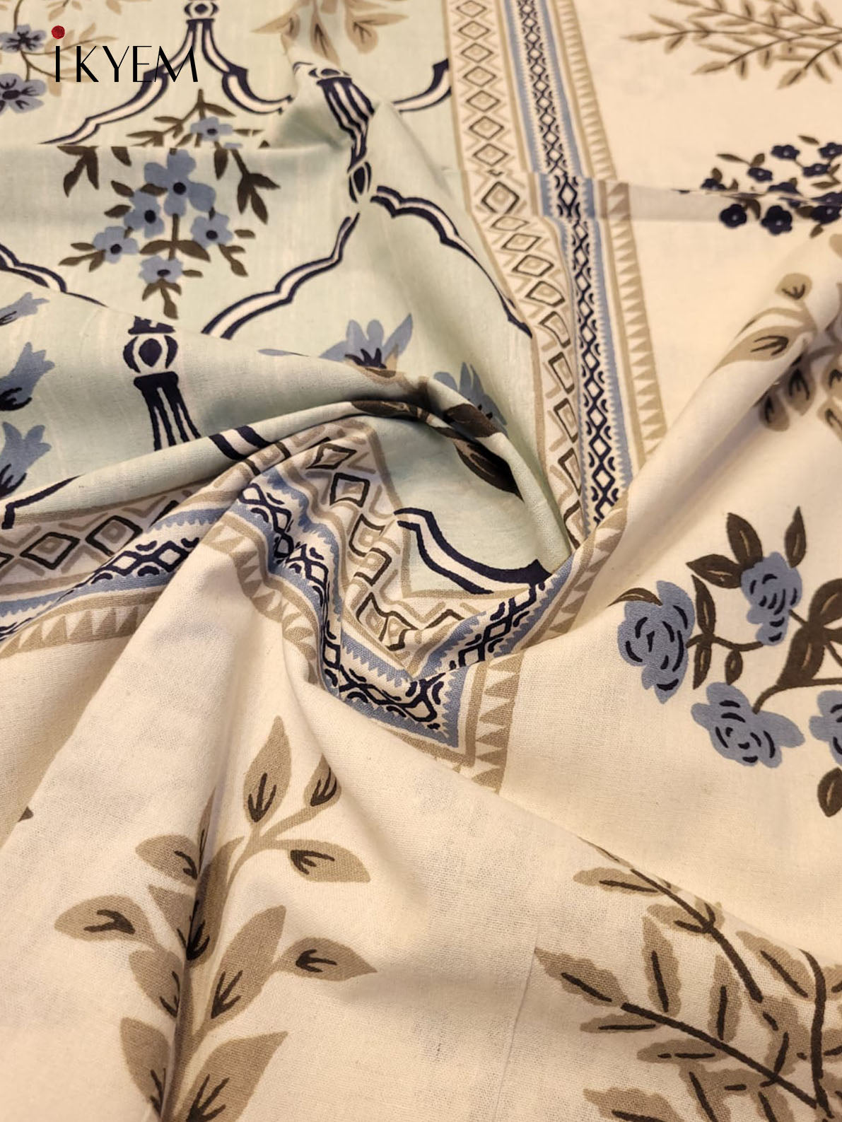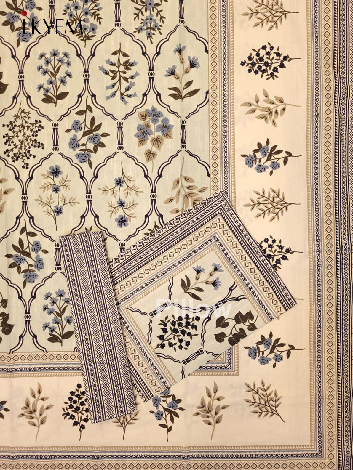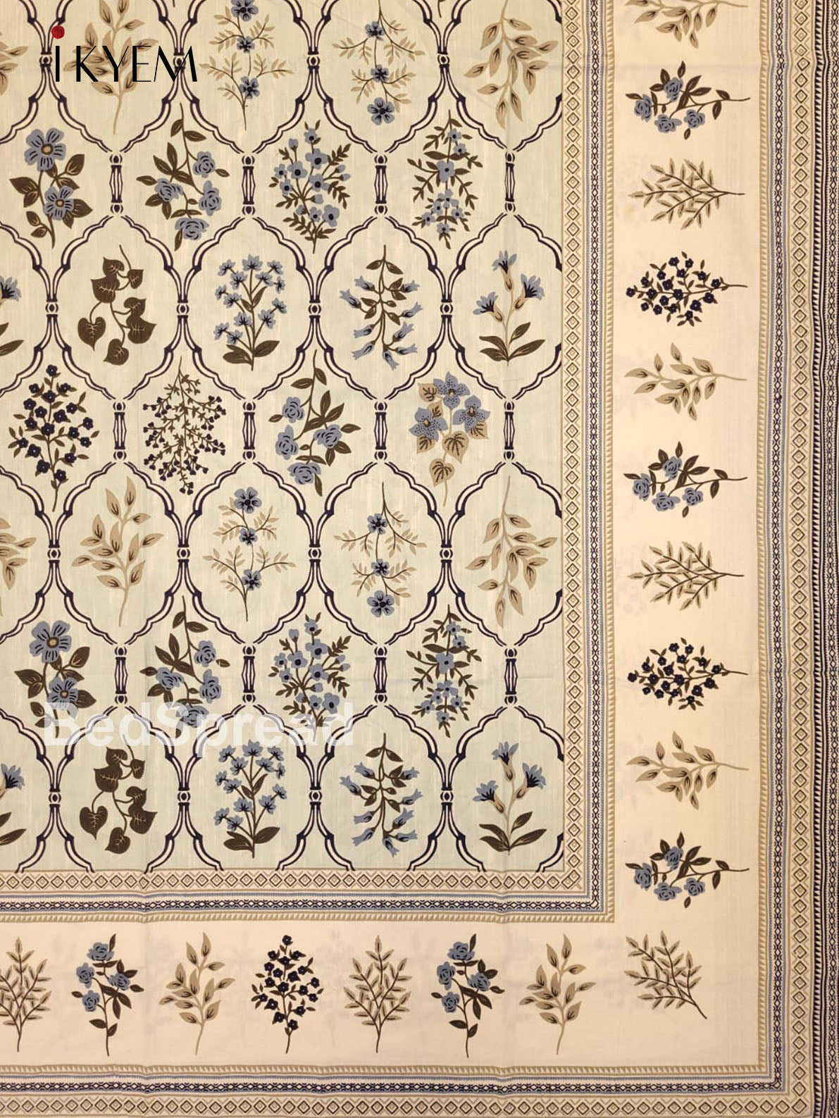 Experience the pinnacle of comfort and elegance with our Cream & Pastel Green Jaipuri Printed Bedspread, complete with two matching pillow covers. Adorned with stunning floral designs and vibrant hues, this bedspread is crafted from high-quality cotton for the ultimate combination of style and coziness